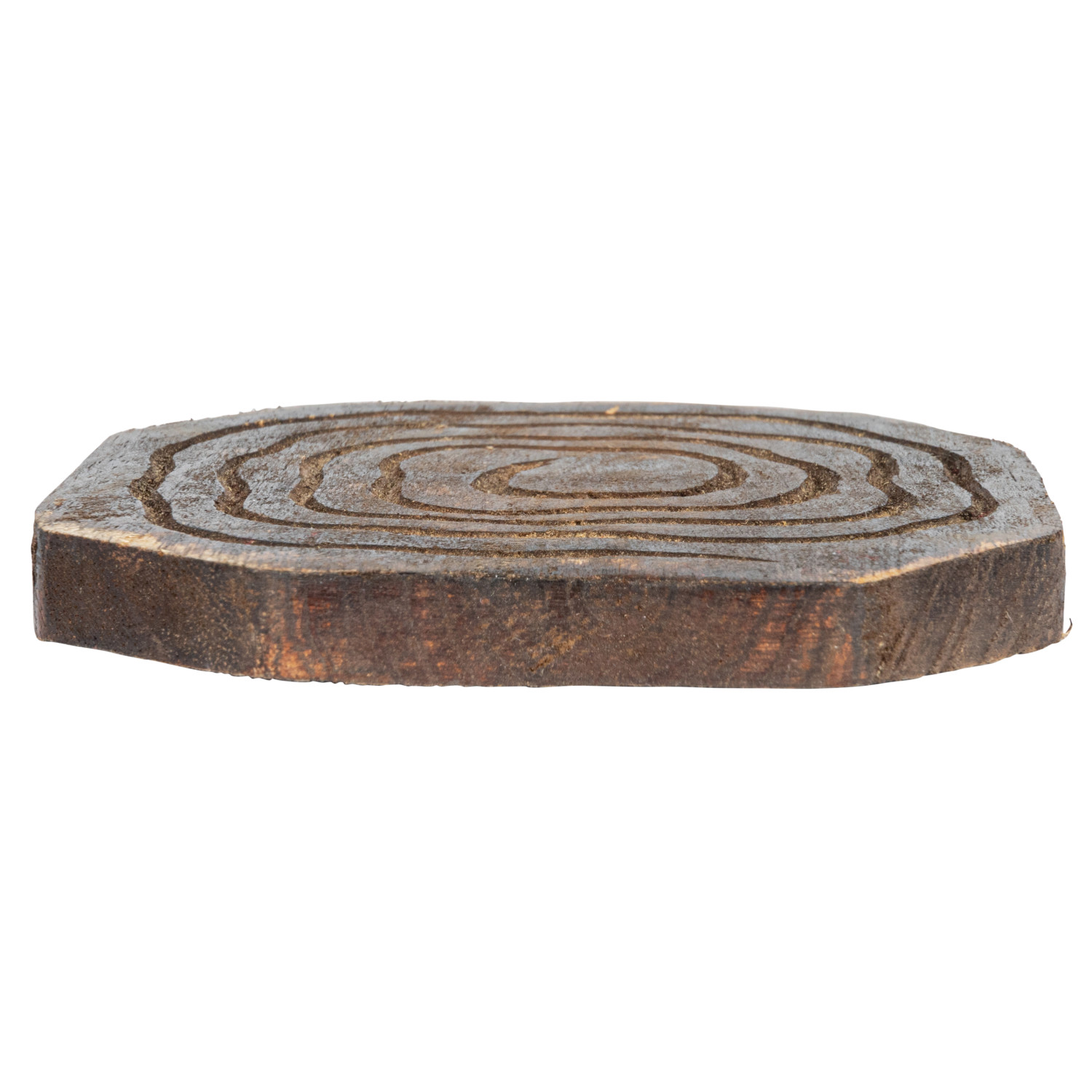 Catalog Name: Approximately 4" Round Hand-Carved Mango Wood Coasters, Distressed Finish, Set of 4 (Each One Will Vary)