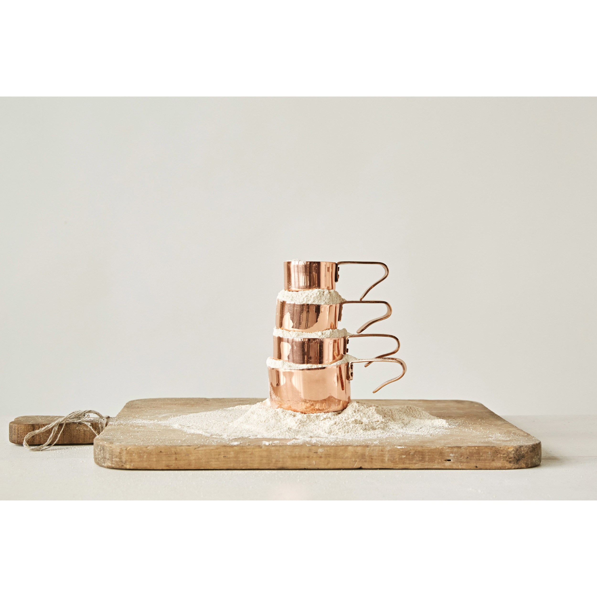 Hang these measuring cups for display in your kitchen. The shiny copper finish will add personality to your room decor. When needing to use them, they will be readily accessible and easy to find.