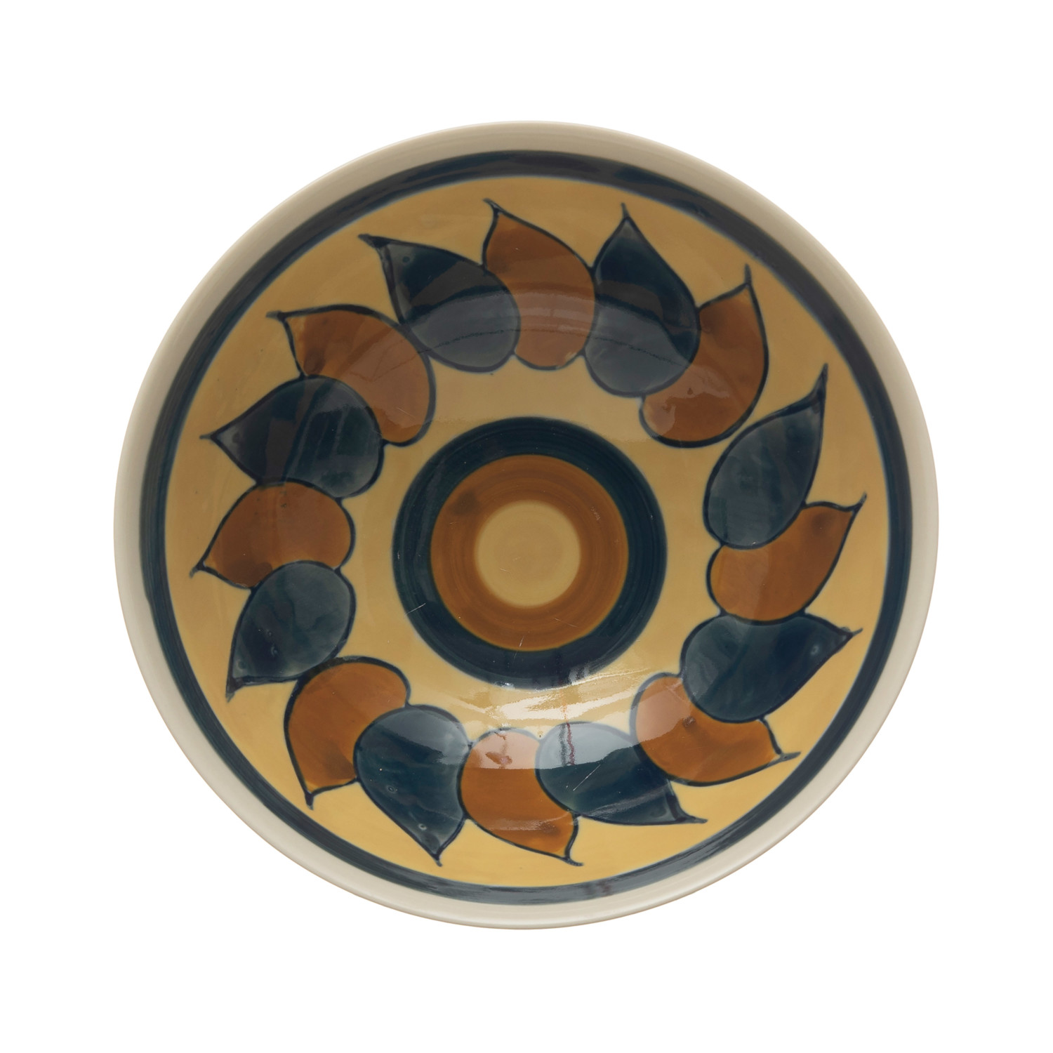 Hand-Painted Stoneware Bowl w/ Flower