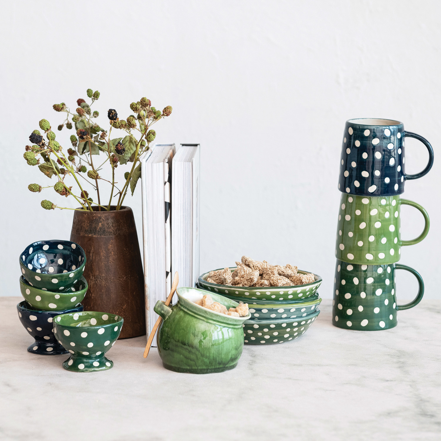 Catalog Name: 6-3/4" Round x 1-1/2"H Two-Tone Hand-Painted Stoneware Bowl w/ Wax Relief Dots, 4 Colors (Each One Will Vary)