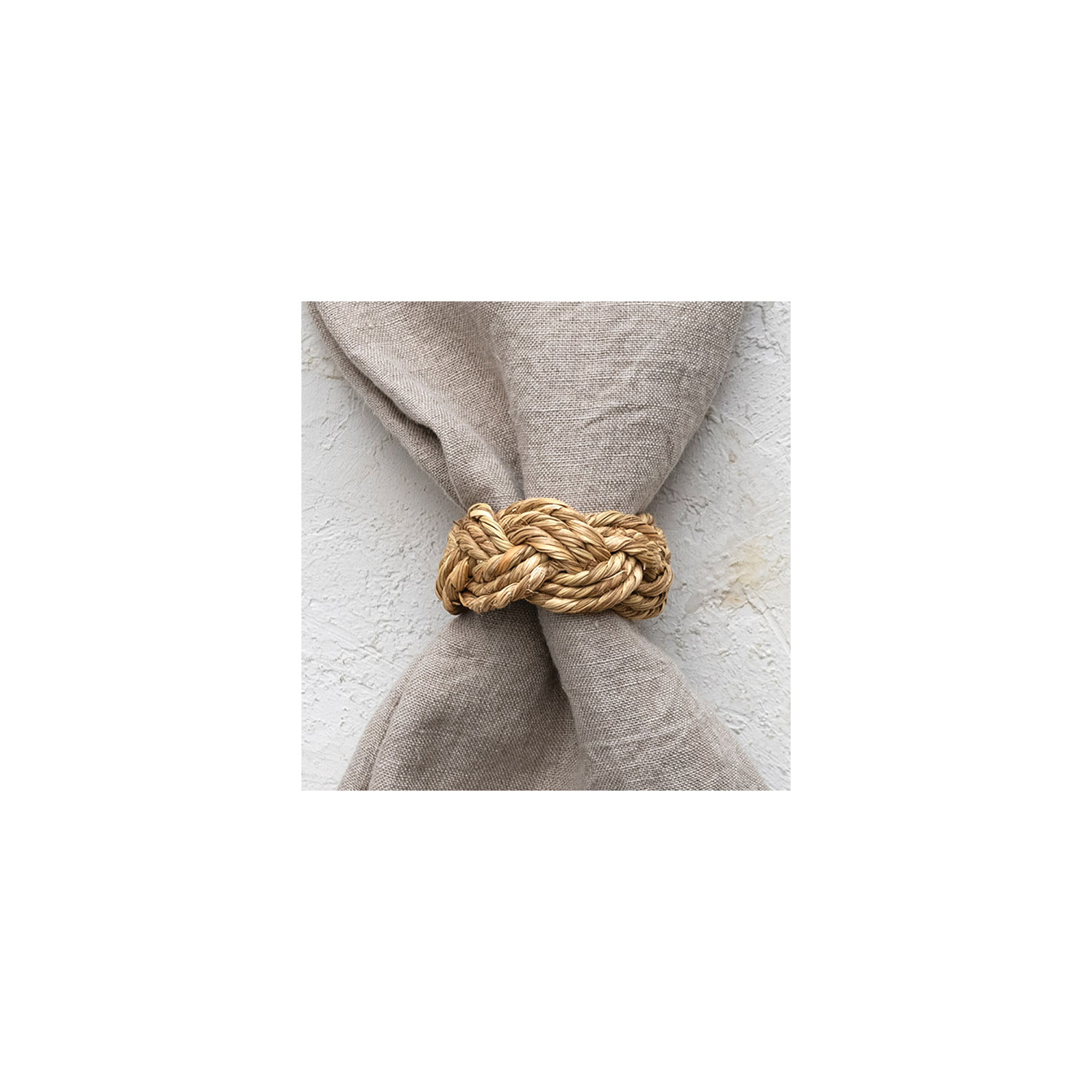 Catalog Name: 2" Round Braided Seagrass Napkin Rings, Natural, Boxed Set of 4