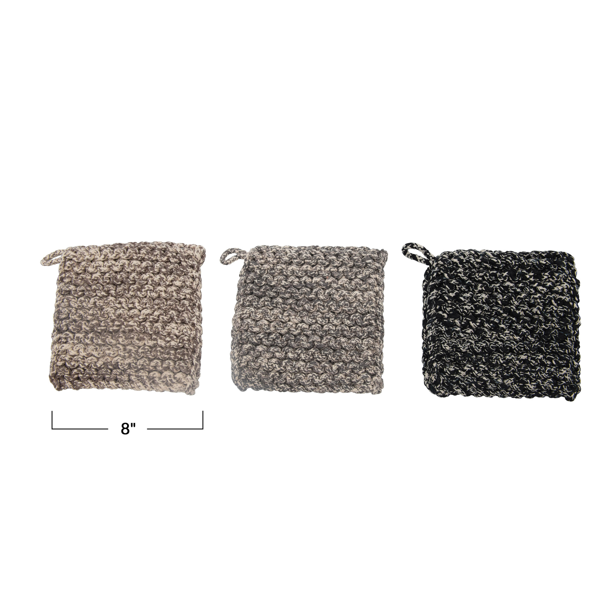 Catalog Name: 8" Square Melange Cotton Crocheted Pot Holder, 3 Colors