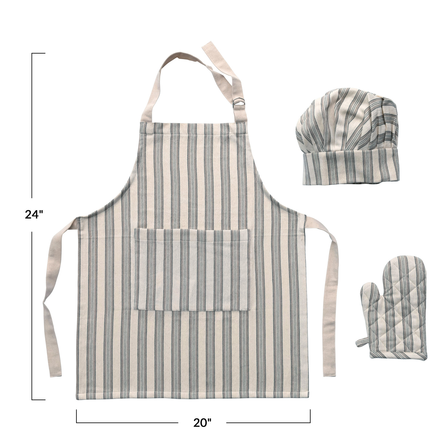 Cotton Child Apron w/ Chef Hat, Oven Mitt & Stripes, Set of 3