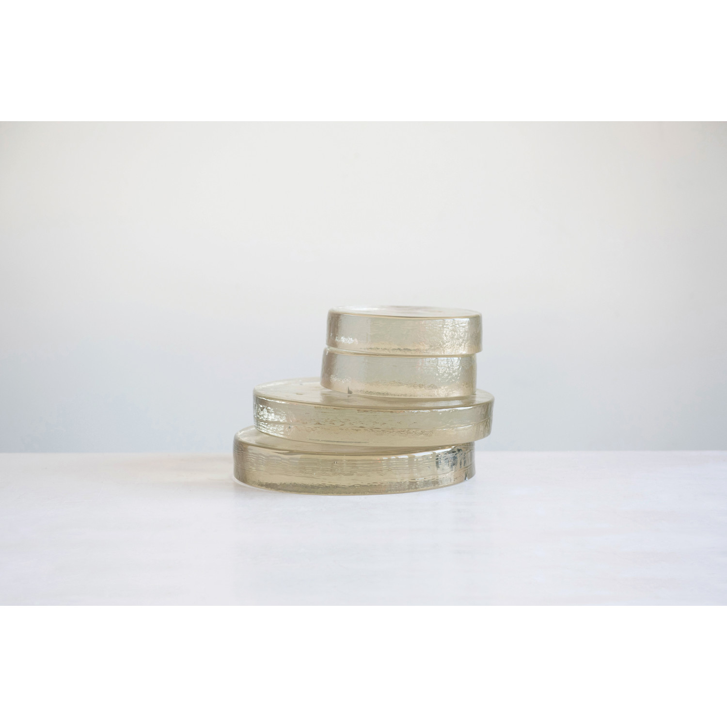 Catalog Name: 12" Round x 2"H Recycled Glass Serving Tray/Candle Plate, Clear