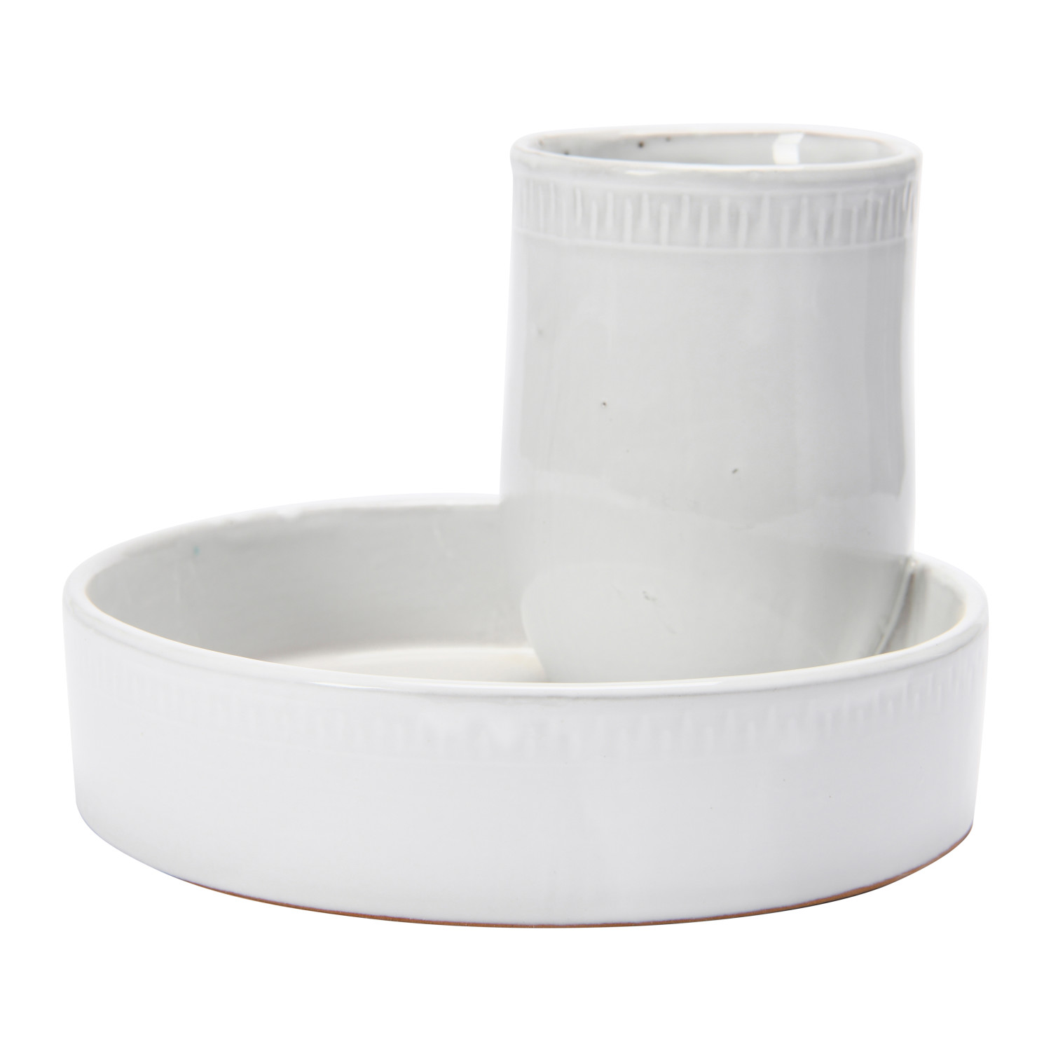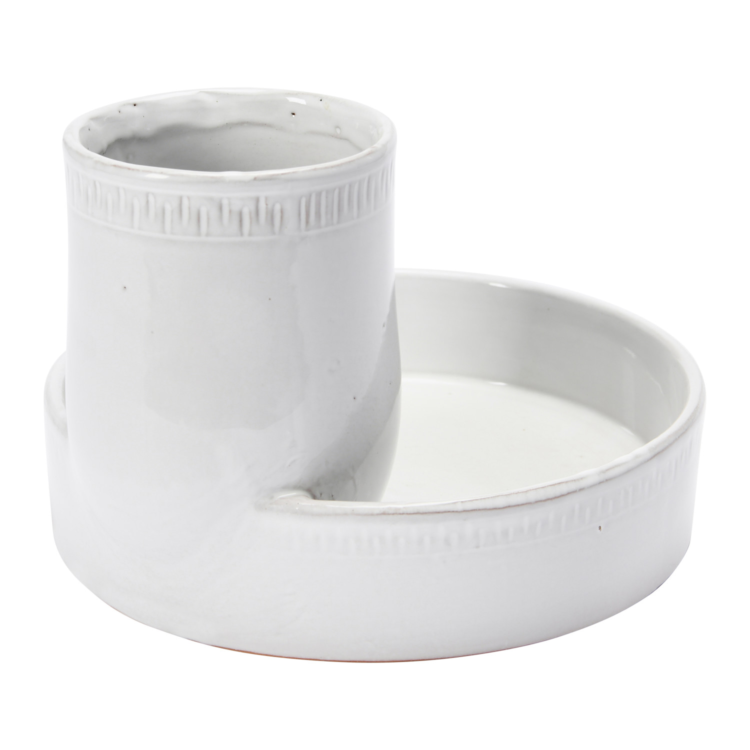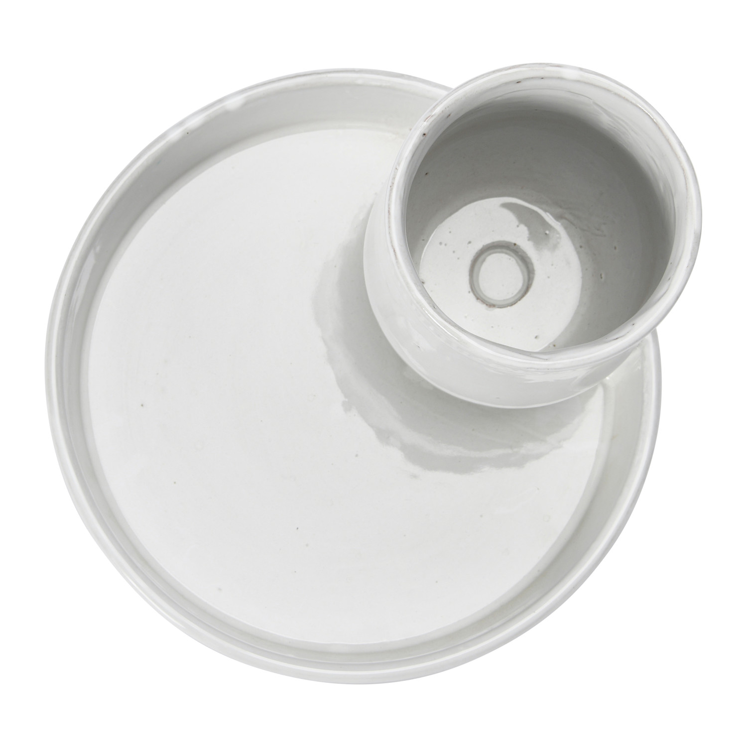 Catalog Name: 9-1/2" Round x 6-3/4"H Terra-cotta Tray w/ 2 Sections, Reactive Glaze, White (Each One Will Vary)