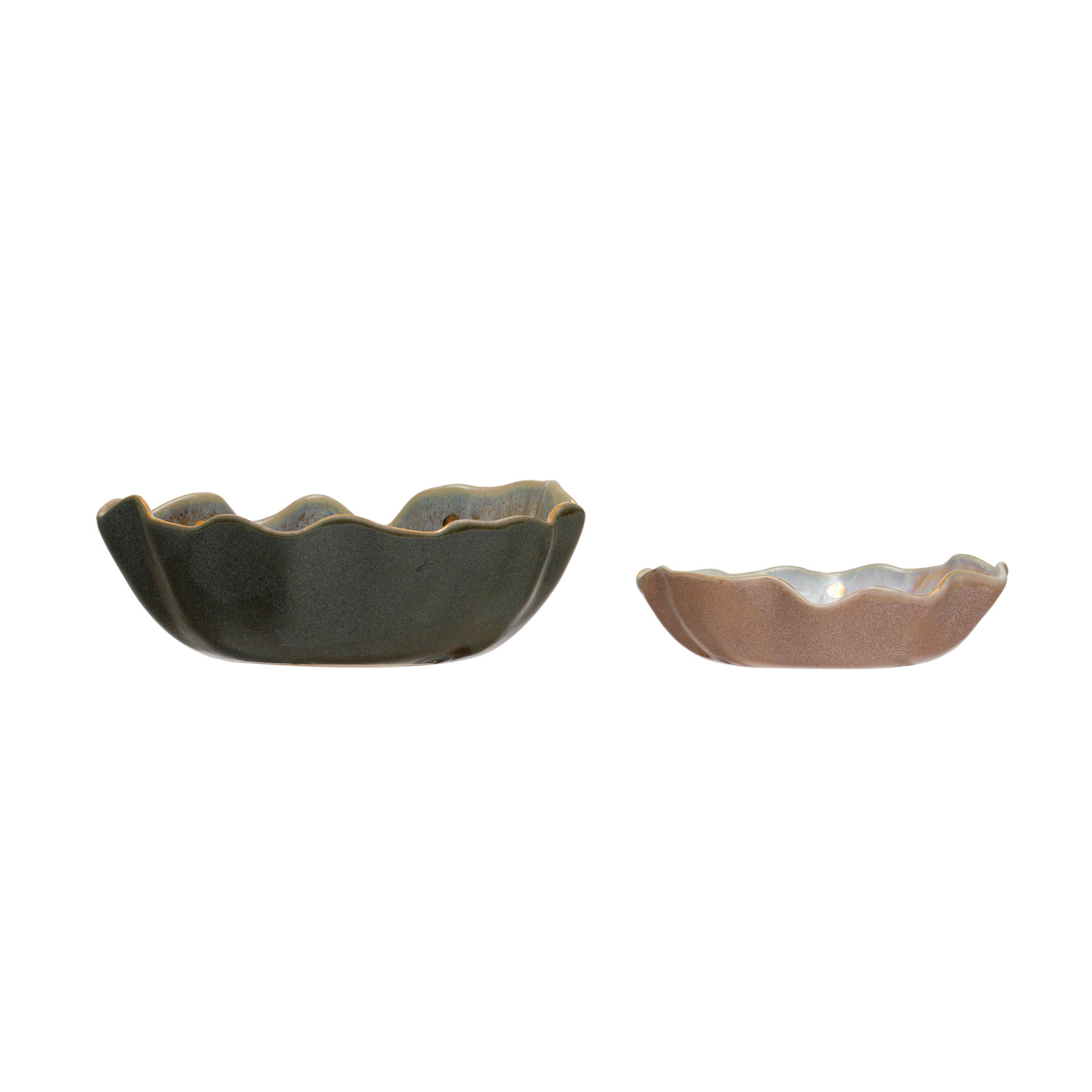 This stunning fluted stoneware dish showcases a naturally variating reactive crackle glaze and eye-catching electroplated accents.
