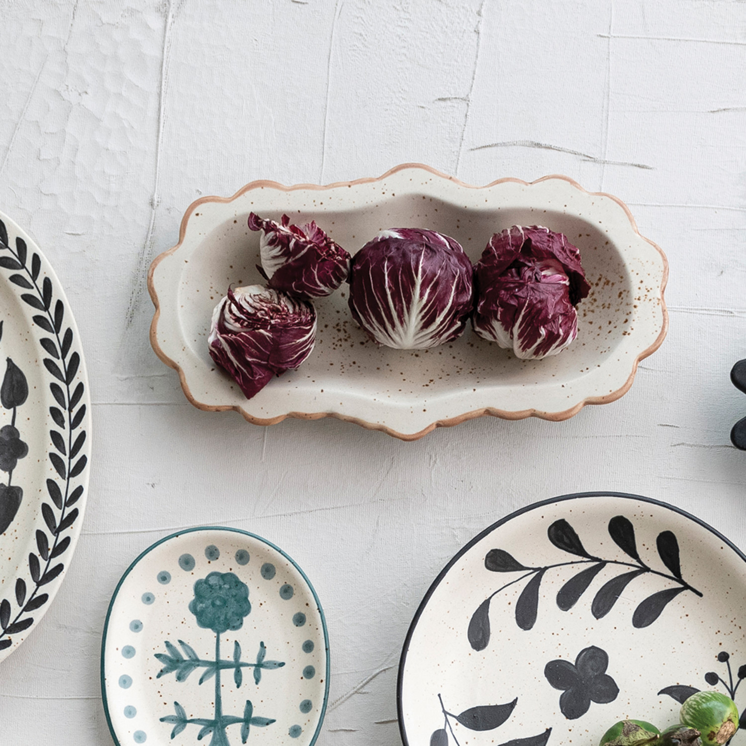 Stoneware Scalloped Platter/Bowl, Cream Color Speckled