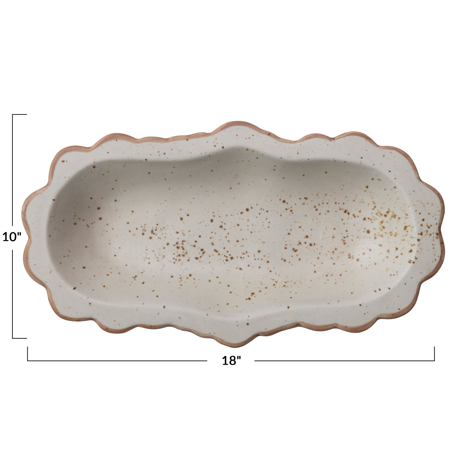 Catalog Name: 18"L x 10"W x 2"H Stoneware Scalloped Platter/Bowl, Cream Color Speckled
