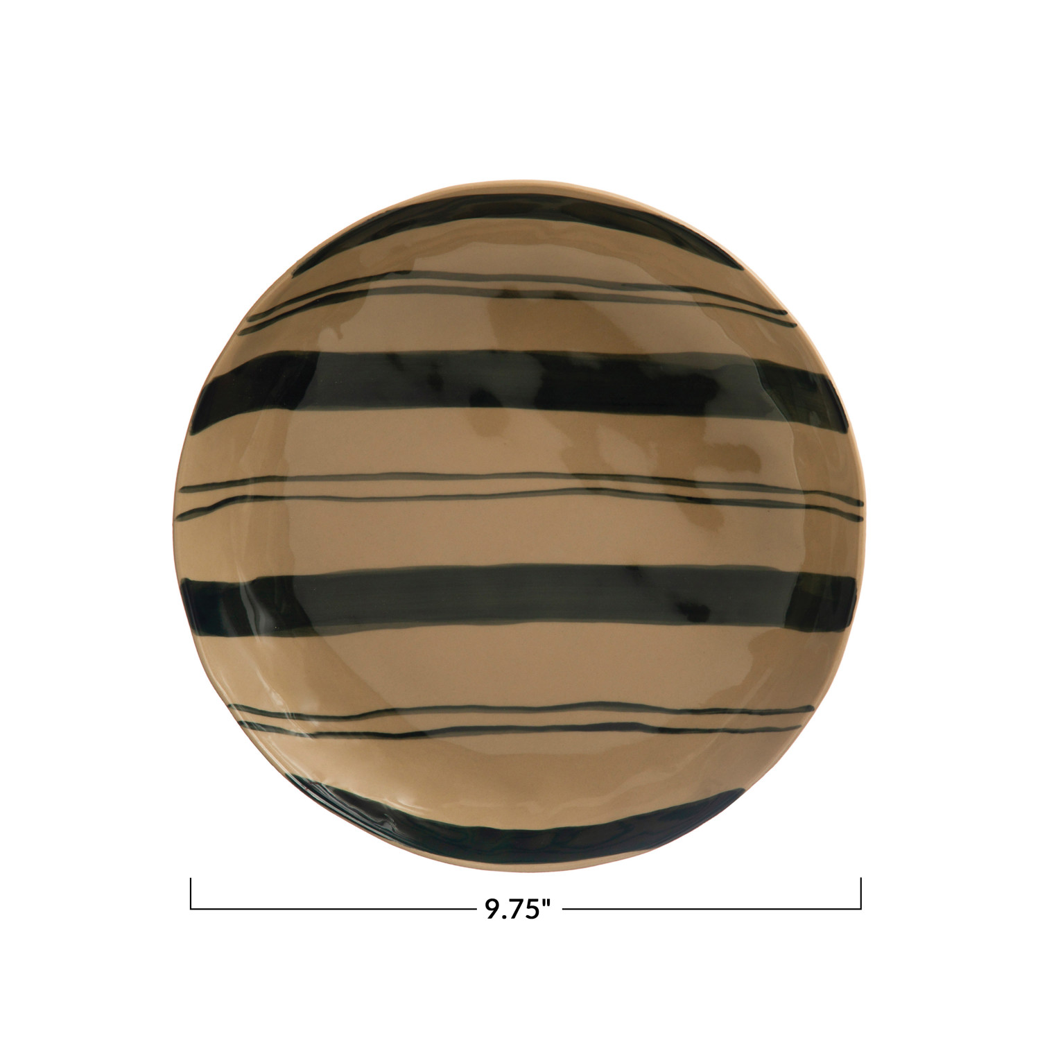 Catalog Name: 9-3/4" Round Hand-Painted Stoneware Serving Bowl w/ Stripes, Midnight Blue & Cream Color