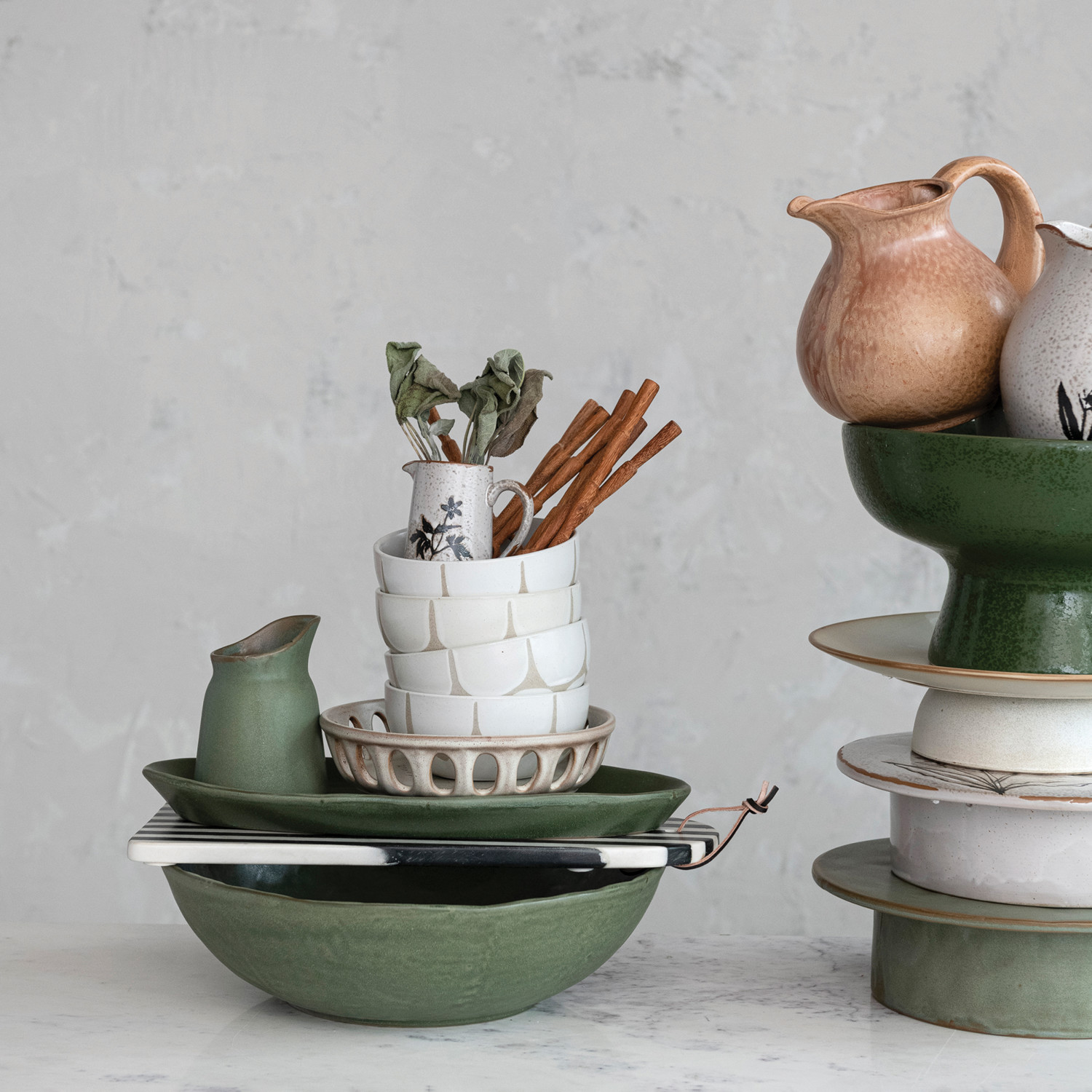 6 oz. Debossed Stoneware Creamer w/ Flowers (Each One Will Vary) ©