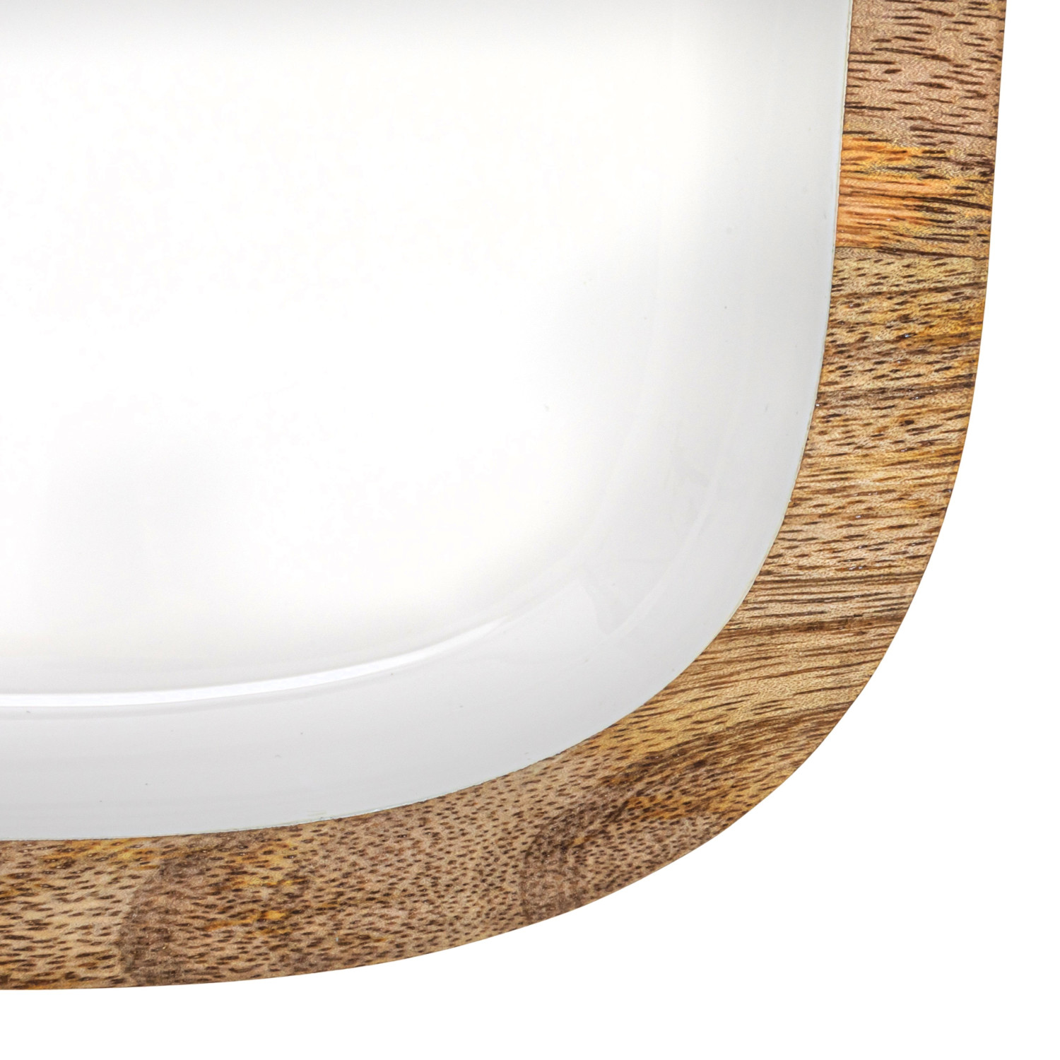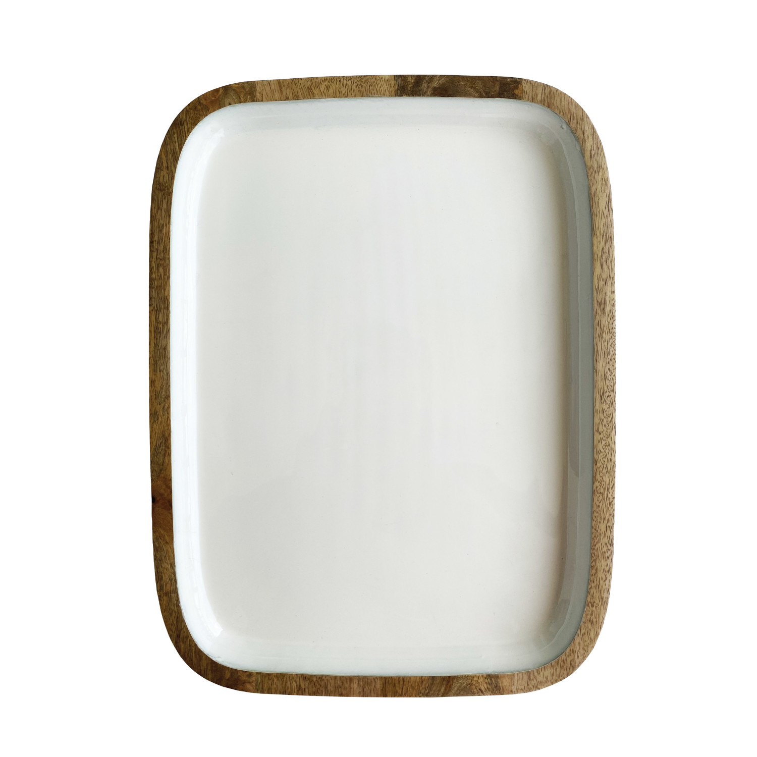 Enameled Mango Wood Tray, White & Natural