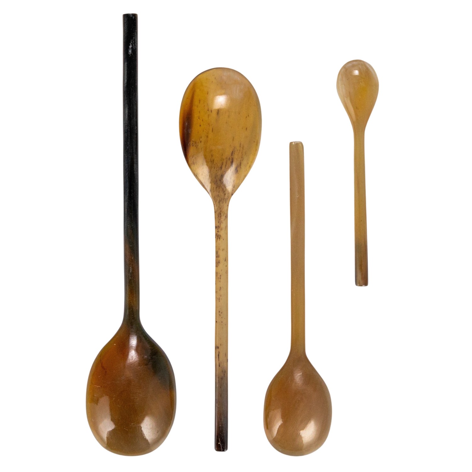 Catalog Name: 4"L - 7-3/4"L Natural Horn Measuring Spoons, Set of 4 in Printed Drawstring Bag (Each One Will Vary)
