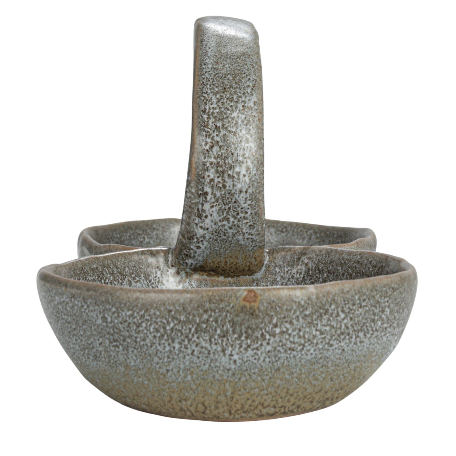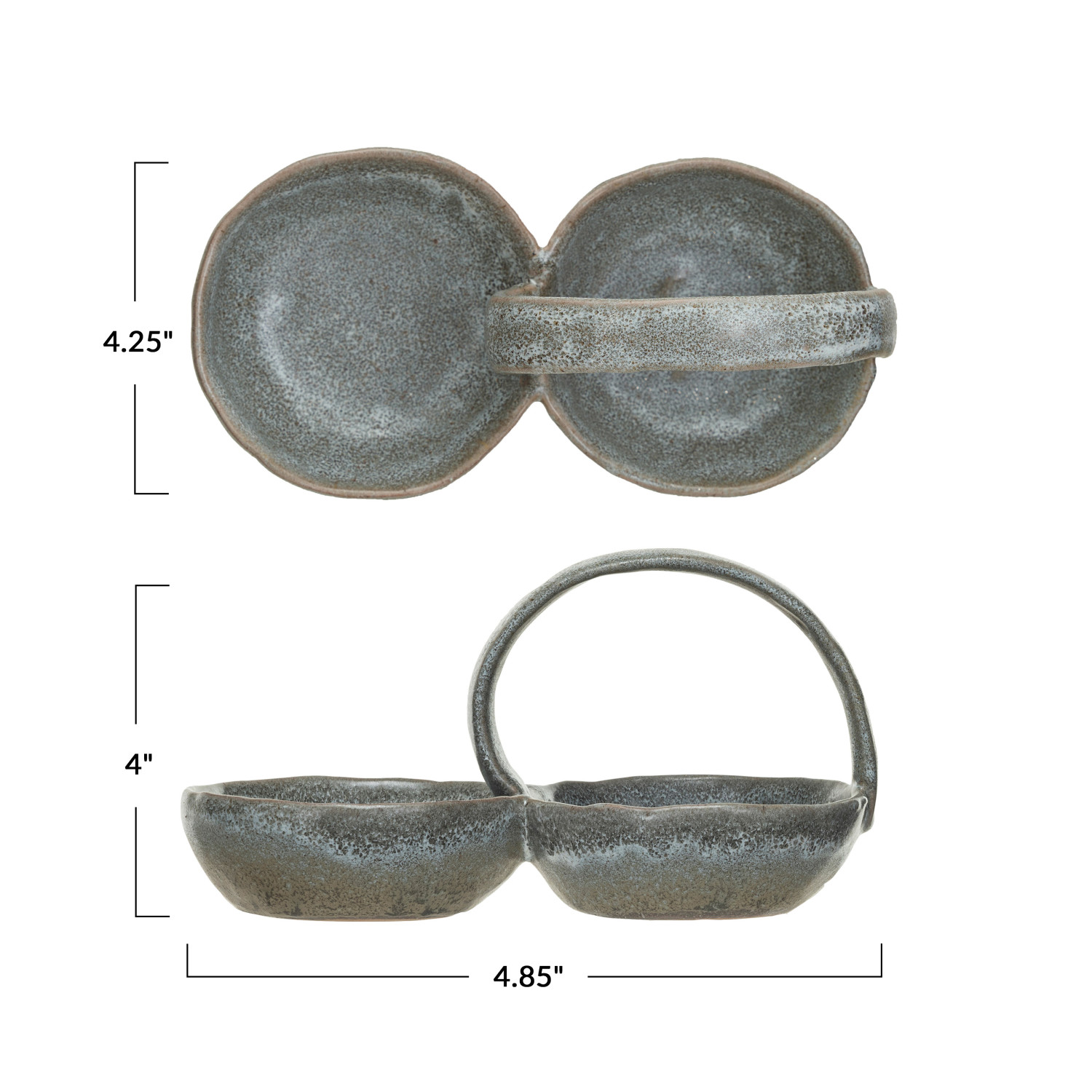 Catalog Name: 8-1/2"L x 4-1/4"W x 4"H Stoneware Double Bowl w/ Handle, Reactive Glaze, Grey (Each One Will Vary)