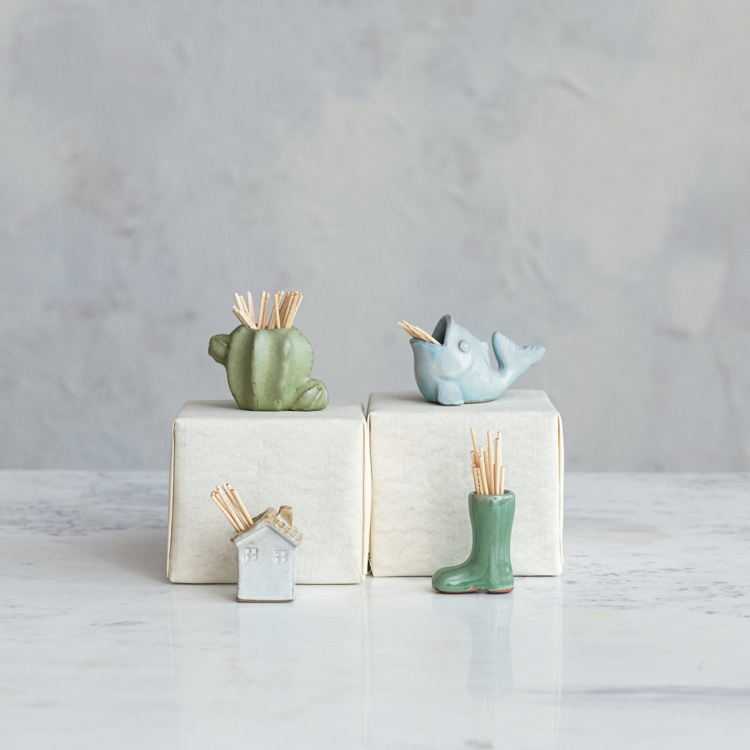 Stoneware House Shaped Toothpick Holder (Each One Will Vary)