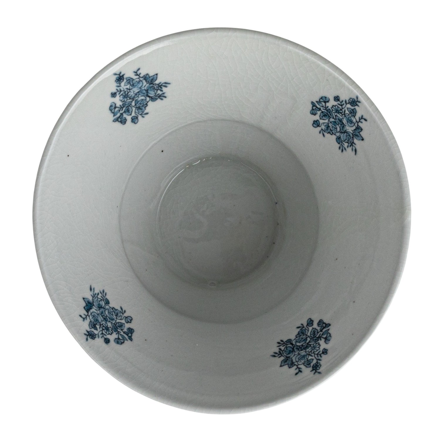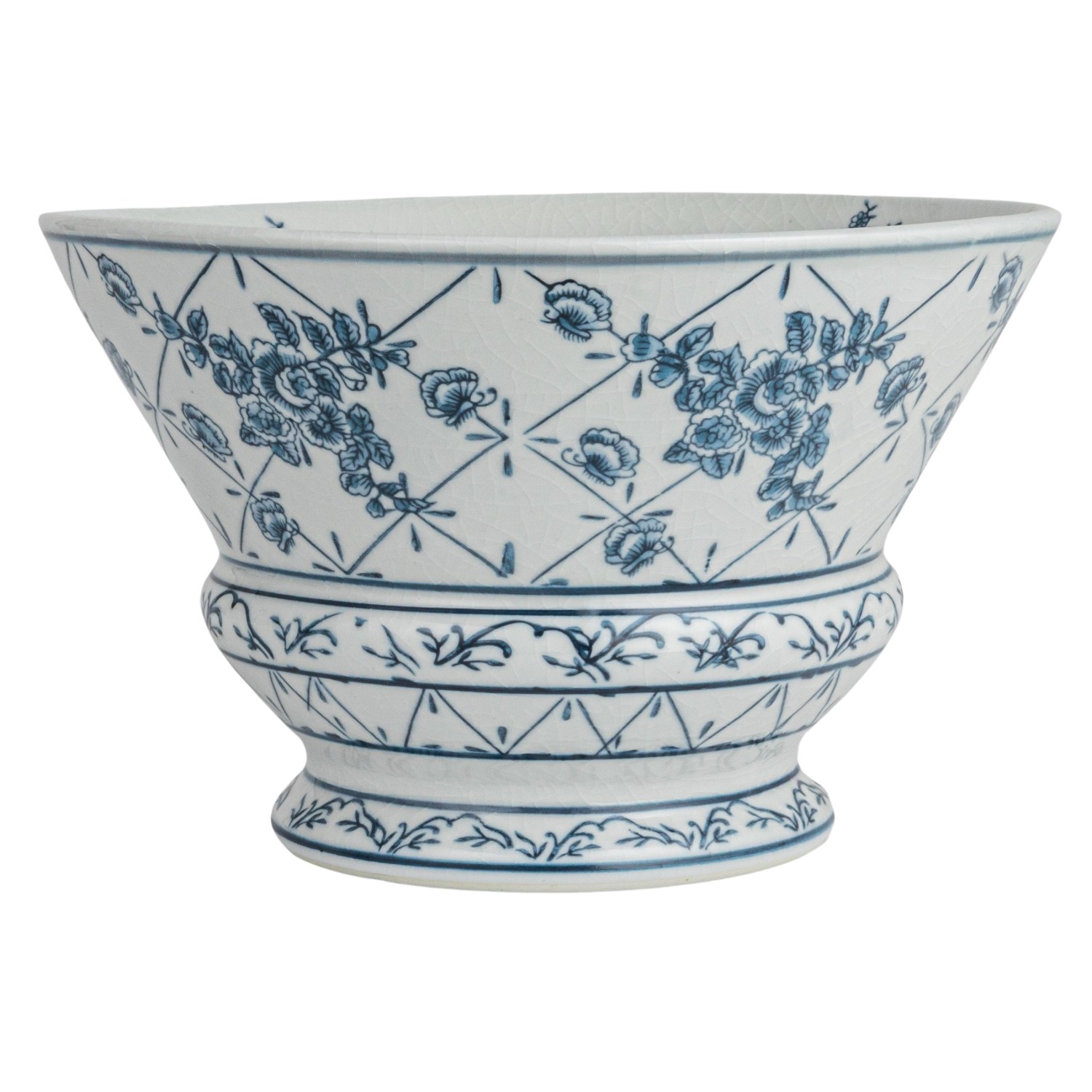 Catalog Name: 9-1/2" Round x 5-3/4"H Hand-Painted Porcelain Vintage Reproduction Planter/Bowl w/ Floral Pattern, Crackle Glaze, Blue & White (Each One Will Vary)