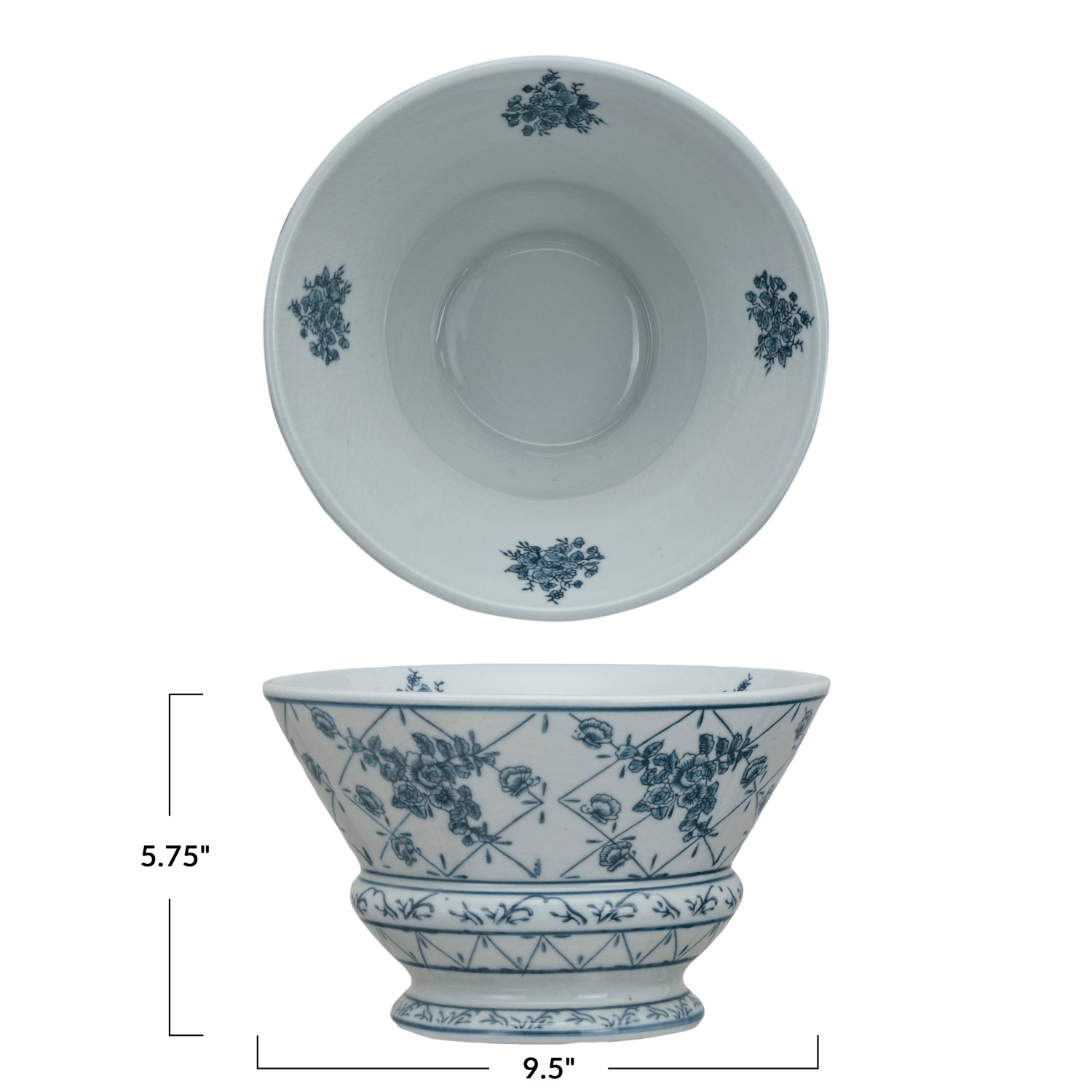 This Blossom Enchantment Porcelain Bowl is a celebration of delicate beauty and timeless elegance. The intricate blue flowers, seemingly brushed onto the pristine white porcelain by an artist's hand, cover the bowl's exterior, inviting admiration from every angle. Its generous size and round shape make it a versatile addition to any table setting, while the floral design adds a touch of romantic nostalgia. Perfect for those who cherish the artistry of bygone eras, this bowl is a piece that transcends trends, offering a lasting appeal that complements a range of home decor styles. It measures 9.5 inches in diameter and 5.75 inches in height, providing a spacious vessel for a variety of uses. Whether used for serving or simply admired as a work of art, it is a bowl that will be treasured for years to come.