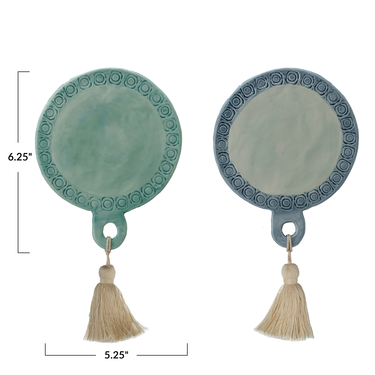 Catalog Name: 6-1/2"L x 5-1/4"W Hand-Painted Debossed Stoneware Mini Tapas Board w/ Tassel, Multi Color, 2 Styles (Each One Will Vary) ©