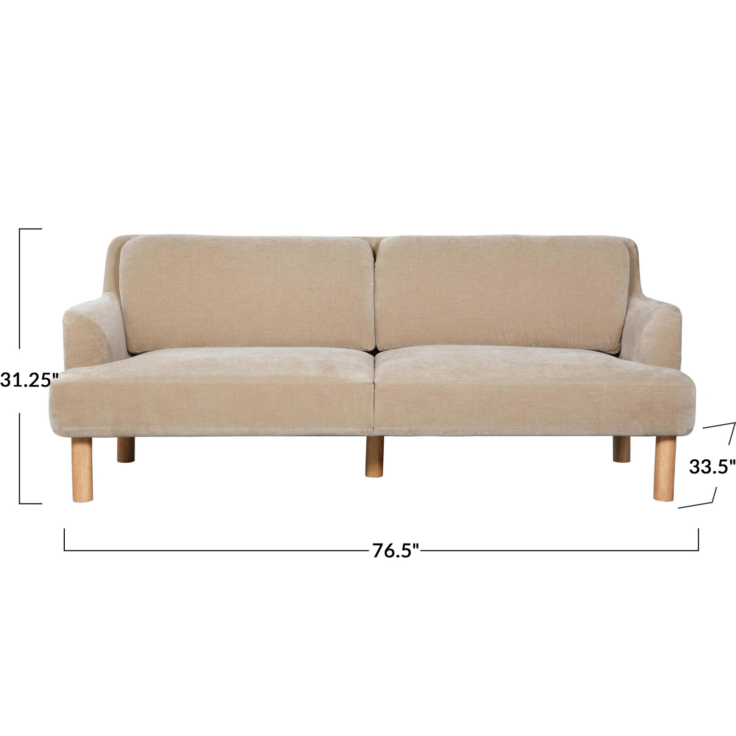 Catalog Name: 76-1/2"W x 33-1/2"D x 31-1/4"H Velvet Upholstered Sofa w/ Oak Wood Legs, Beige & Natural, KD, Truck Ship