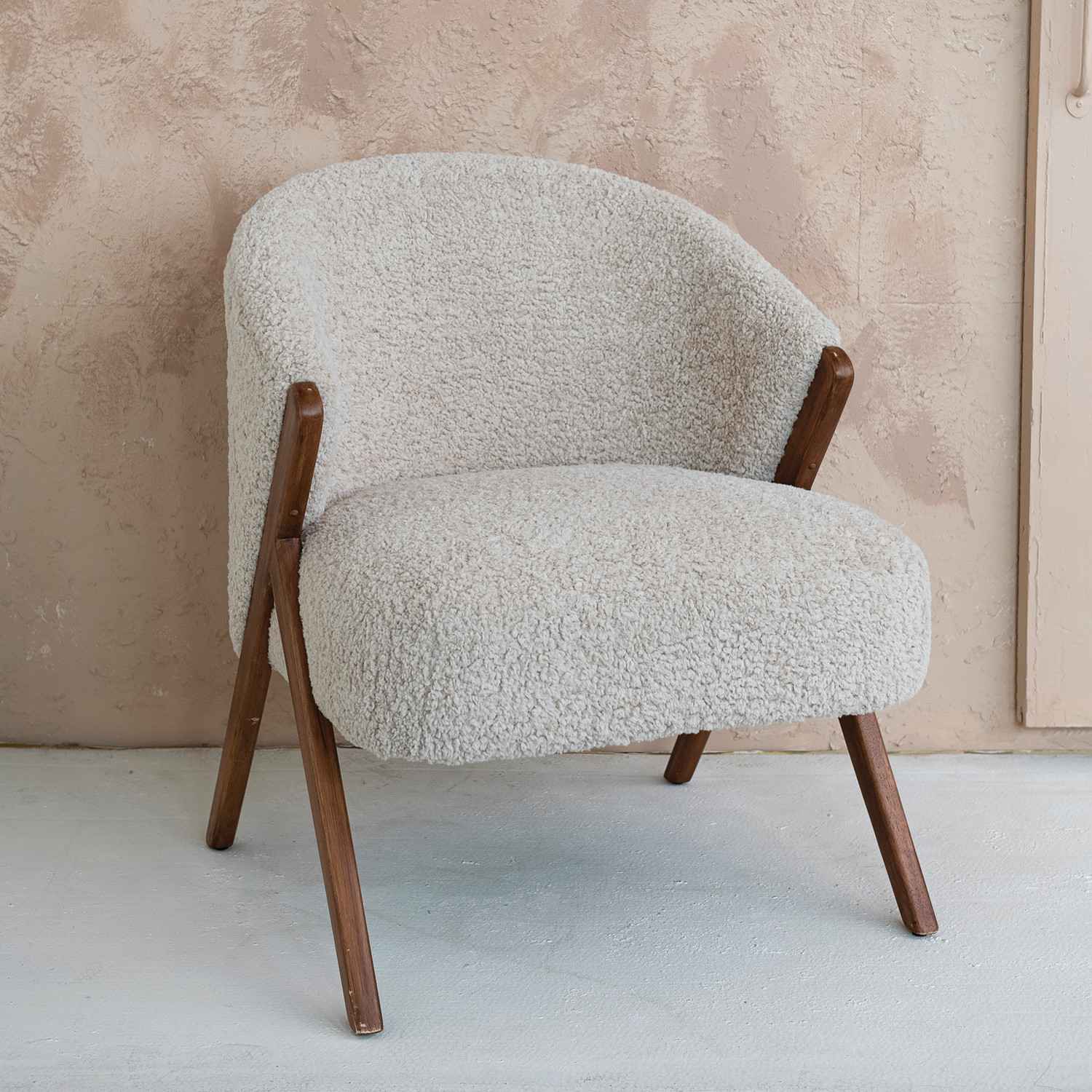 Bouclé Fabric Upholstered Chair w/ Rubberwood Legs