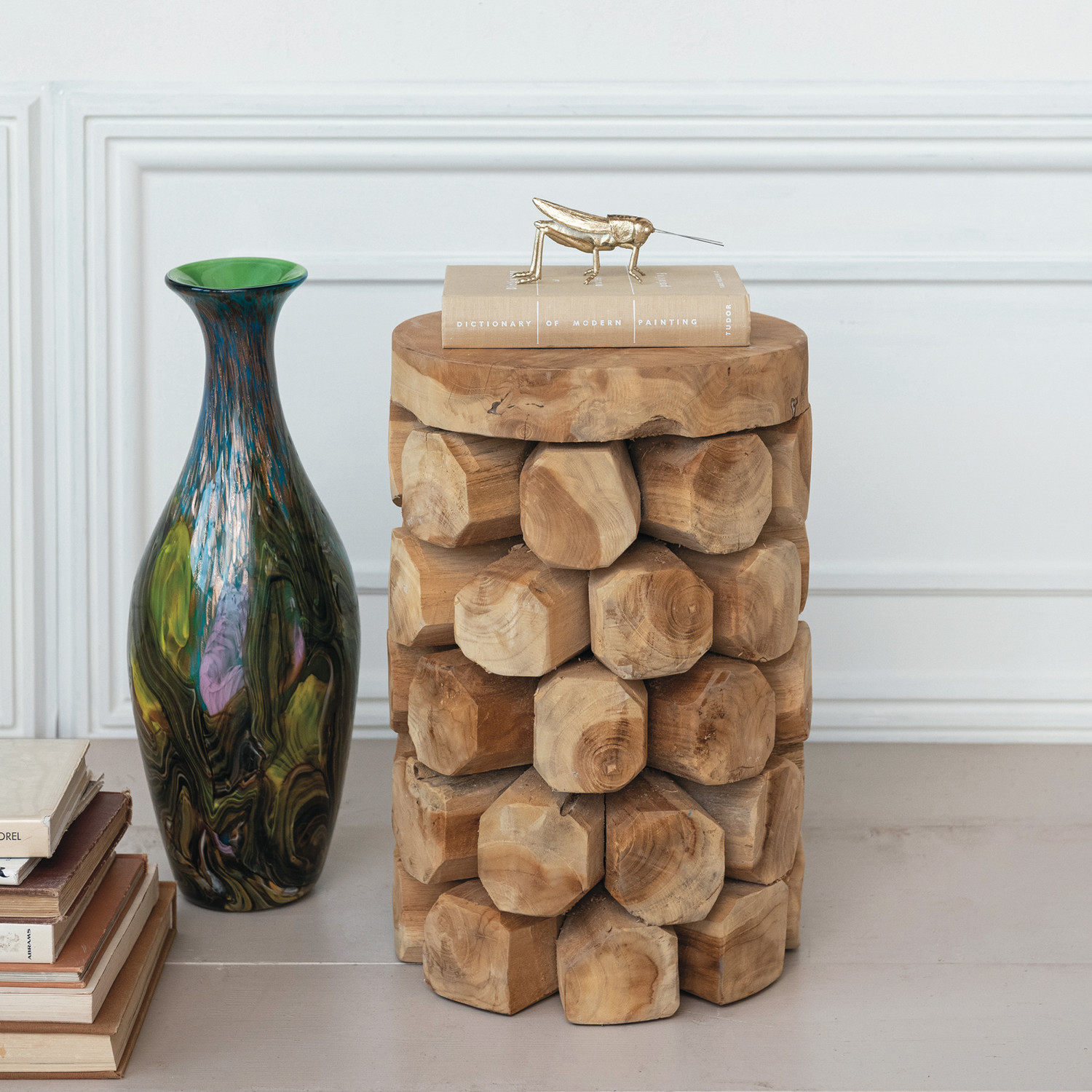 Catalog Name: 11-3/4" Round x 18-1/4"H Teakwood Root Table/Stool, Natural, Truck Ship
