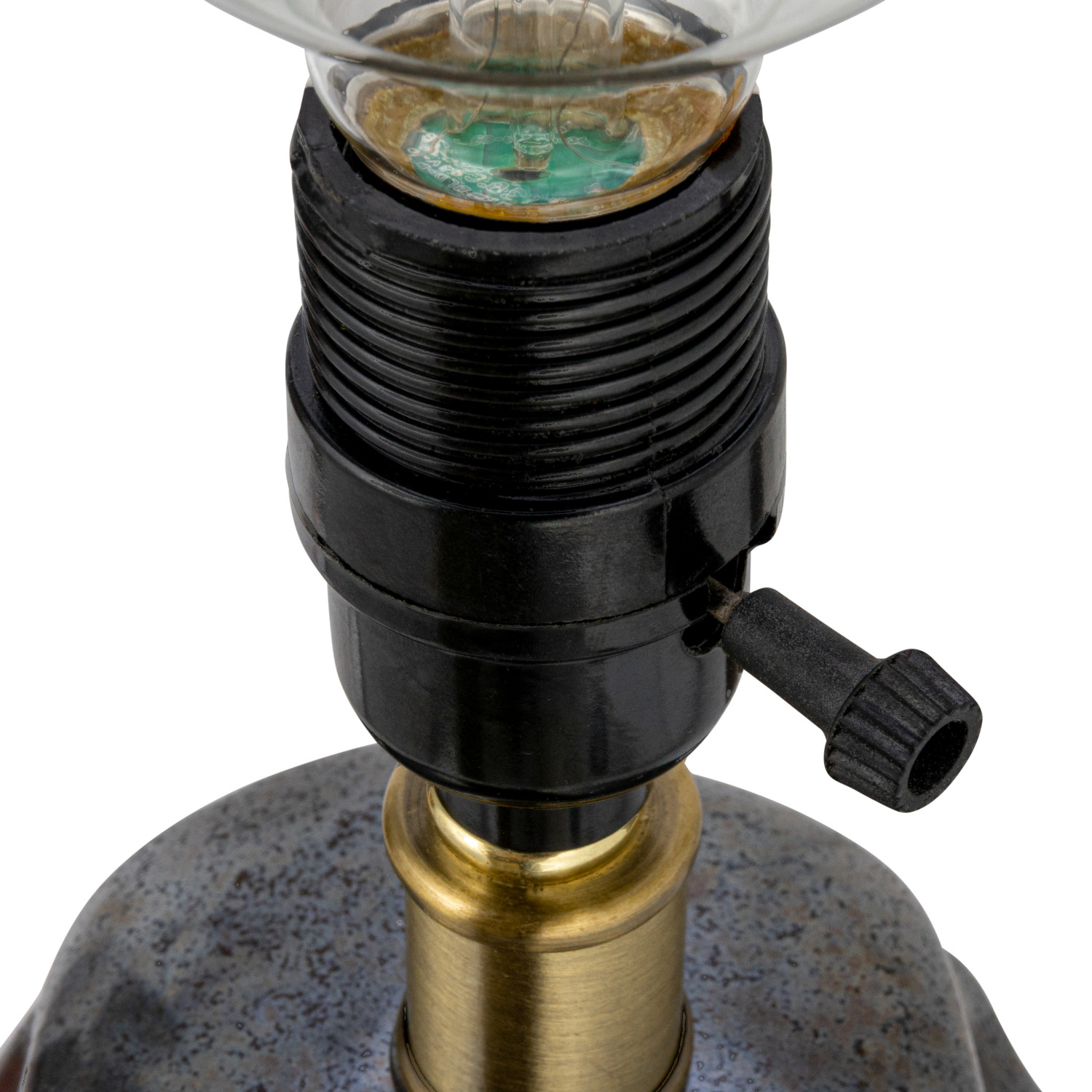 Catalog Name: 13" Round x 20"H Ceramic Organic Shaped Table Lamp w/ Fabric Shade & Inline Switch, Metallic Reactive Glaze, Gunmetal Color (Each One Will Vary)
