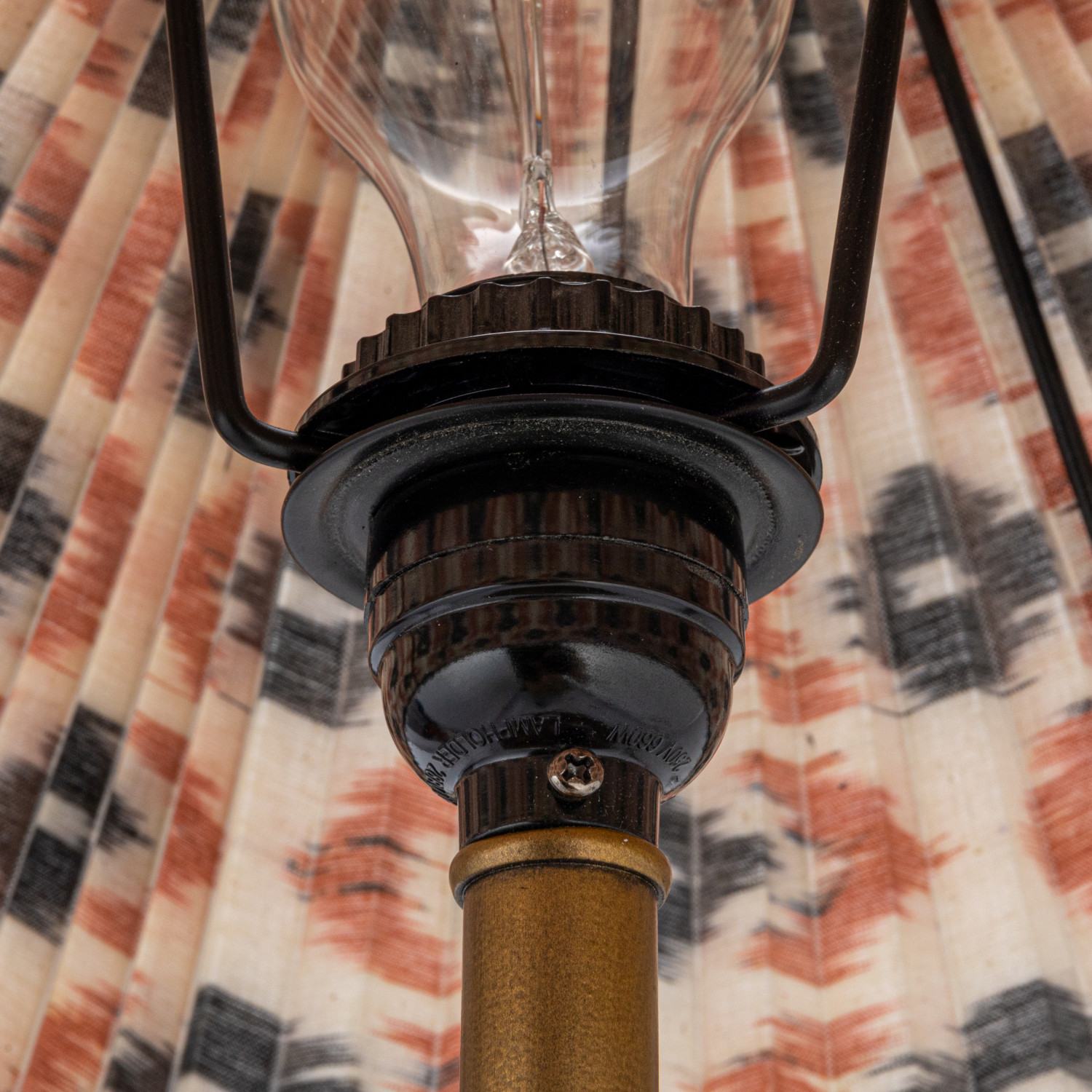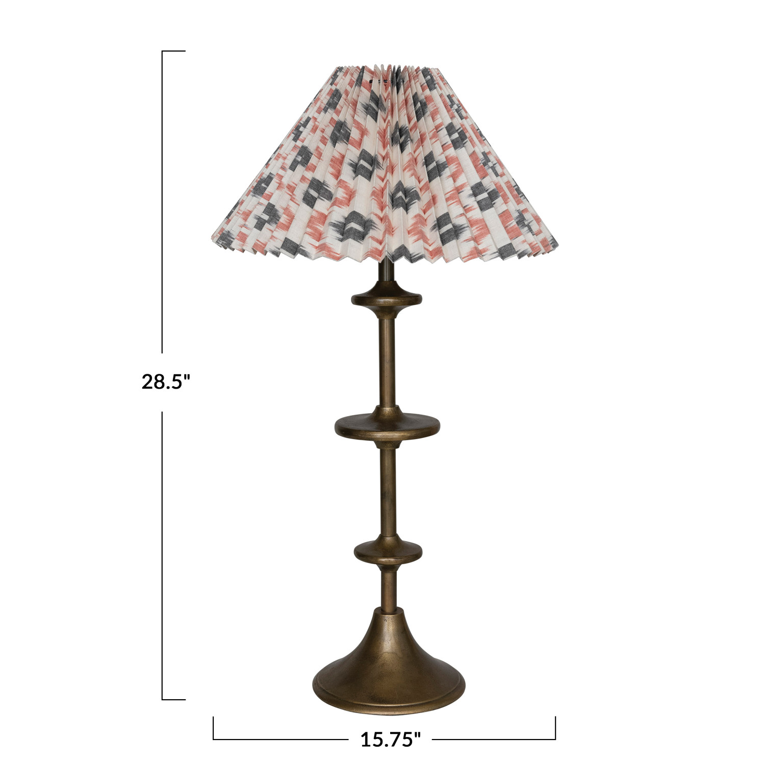 Catalog Name: 15-3/4" Round x 28-1/2"H Metal Candlestick Table Lamp w/ Pleated Cotton Ikat Shade & Inline Switch, Antique Brass Finish & Multi Color (Each One Will Vary)