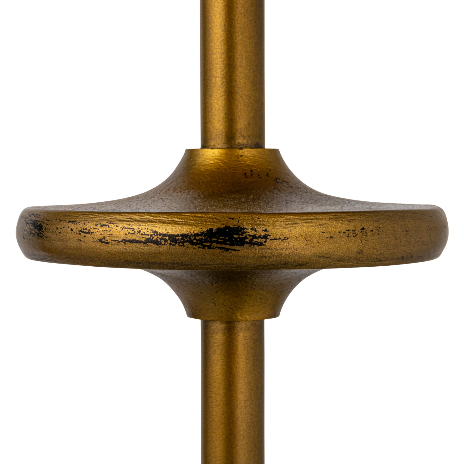 Brighten up any home or office with these floor and table lamps collections. These floor and table lamps collections provide a variety of lamps that can match any space and style, from classic to contemporary. Find lamps in different shapes and sizes, such as arc, tripod, swing-arm, globe, cylinder, and more to choose from. Different materials and finishes of lamps, such as metal, wood, glass, ceramic, fabric, and more, are also available. The perfect lamp for reading, working, or creating ambiance can be found here. Check and find today the best floor and table lamps for any space. This elegant lamp features a sleek metal base with an antique brass finish, the round shape, and candlestick-inspired design add a touch of sophistication to any space; adorned with a pleated cotton ikat shade in vibrant multi-colors, this lamp becomes a stunning focal point in any room. Suited for homes with classic, vintage, or eclectic decor styles, the antique brass finish lends a sense of old-world elegance, while the pleated cotton ikat shade brings a vibrant and contemporary twist. It requires a maximum 40-watt bulb (not included), and the inline switch allows for convenient control, making it easy to create the desired lighting atmosphere. This lamp has a sturdy and durable aluminum base and a 6 feet high-quality electric fitting for safety and reliability, and a soft and textured shade made of cotton and metal.