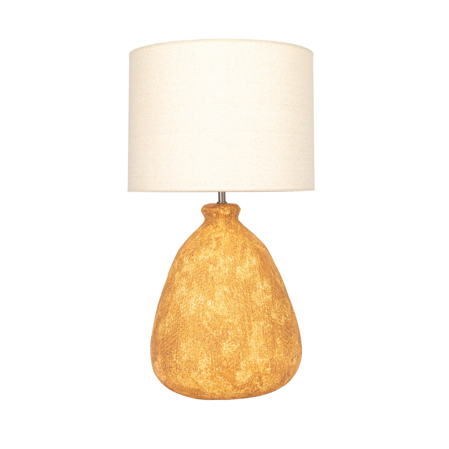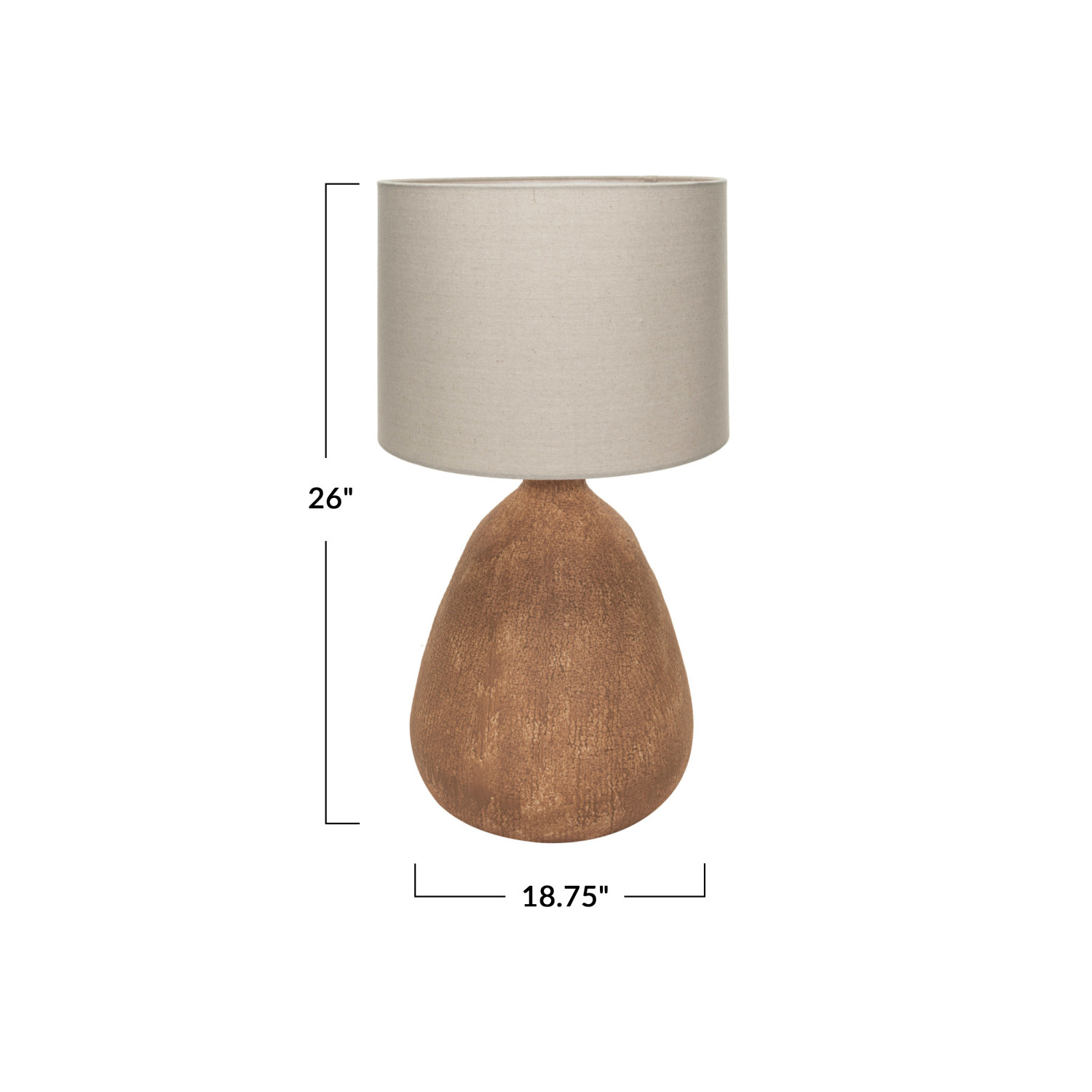 Catalog Name: 18-3/4" Round x 26"H Textured Stoneware Table Lamp w/ Linen Shade, Terra-cotta Color & Natural