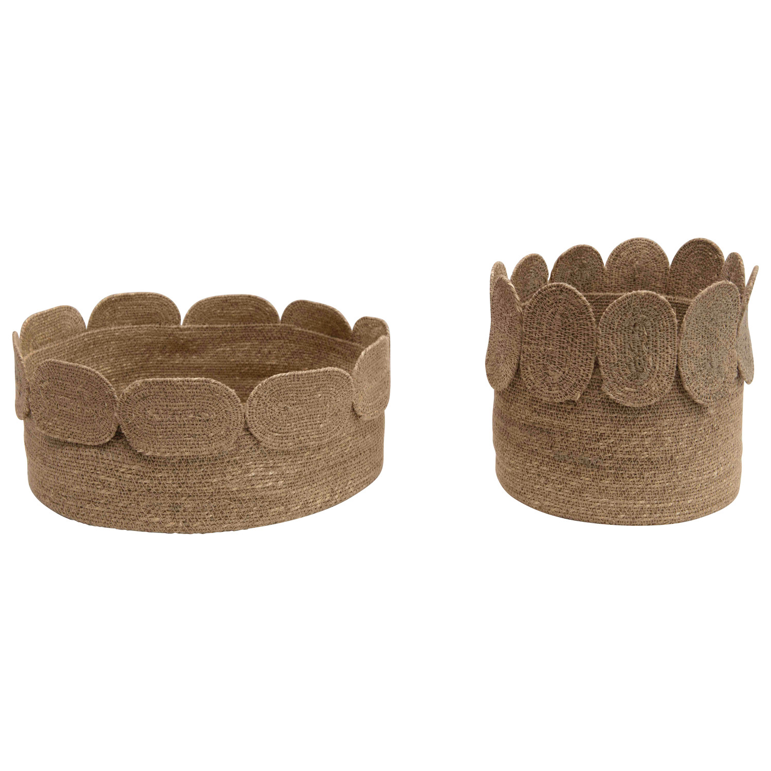 Catalog Name: 13" Round x 5-1/2"H & 9" Round x 9"H Hand-Woven Seagrass Baskets w/ Appliqued Edge, Natural, Set of 2