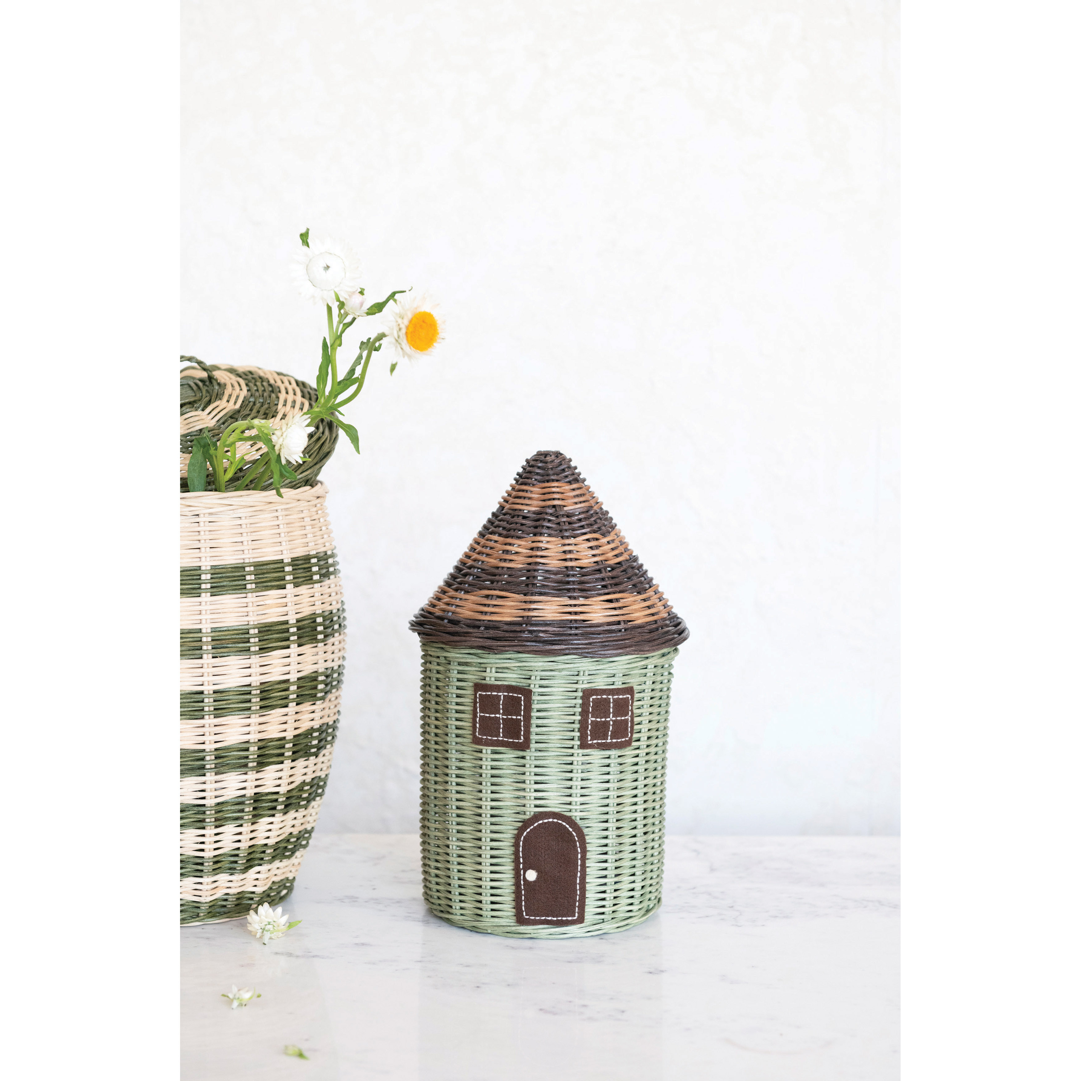 Catalog Name: 7-3/4" Round x 12-1/4"H Hand-Woven Rattan House Shaped Basket w/ Lid, Multi Color