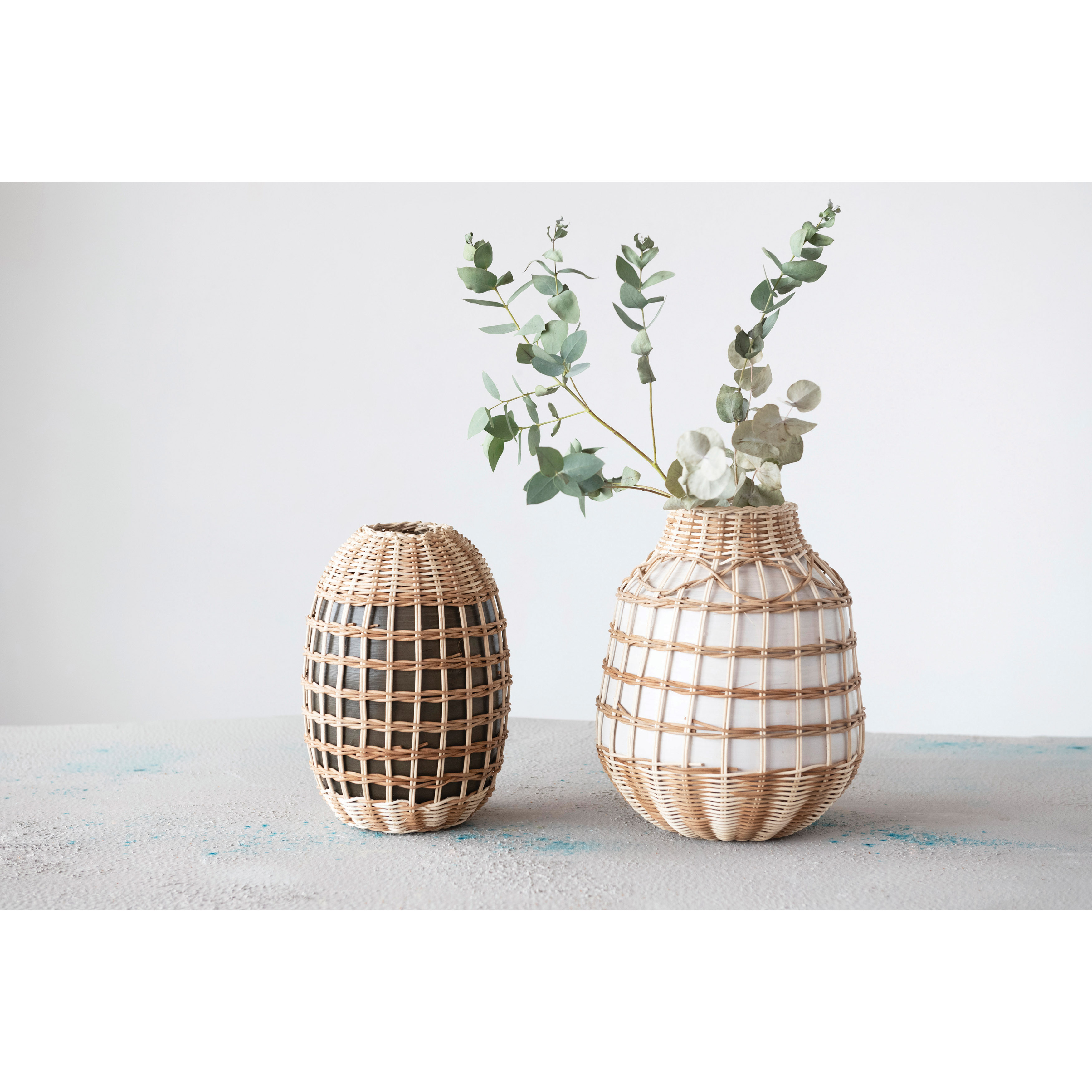 Catalog Name: 9-1/2" Round x 11-3/4"H Decorative Hand-Woven Seagrass & Bamboo Wrapped Vase, White & Natural