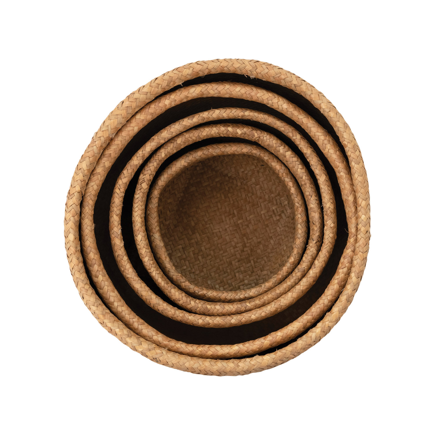 Catalog Name: 15" Square x 10-1/2"H, 13" Square x 10"H, 11-1/2" Square x 8-1/2"H, 9-1/2" Square x 7-1/2"H & 8-1/4" Square x 6"H Hand-Woven Seagrass Baskets w/ Floral Design, Multi Color, Set of 5