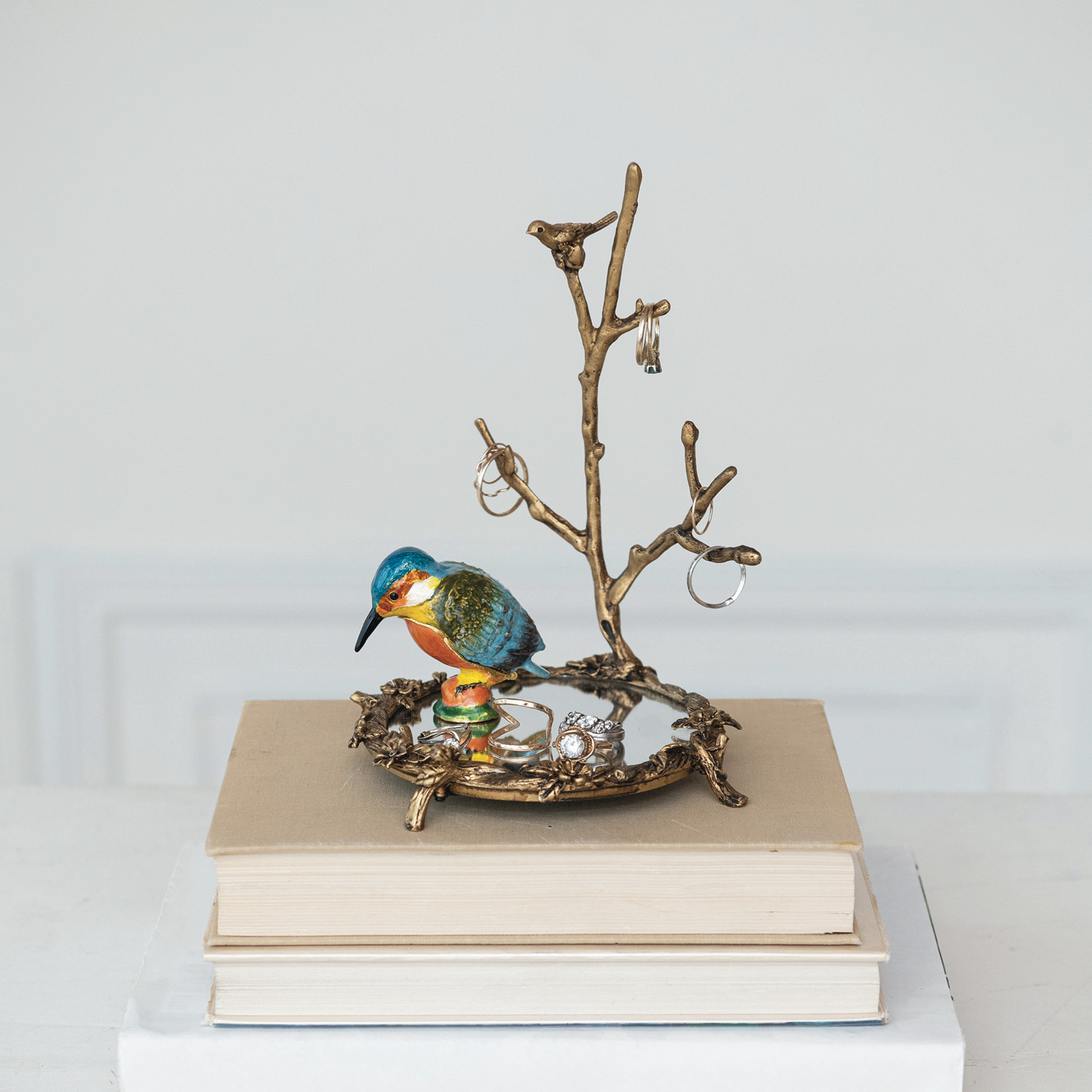 This Enameled Metal Kingfisher Shaped Trinket Box is a small treasure itself, capturing the essence of tropical beauty. The metal box, finished in gold, measures 1.5 inches long, 2.25 inches wide, and 2.25 inches high, and is adorned with a multi-colored design that brings the vibrancy of a kingfisher's plumage to the home. It's an ideal choice for those who appreciate the allure of tropical, coastal, or eclectic styles. Whether placed on a vanity, shelf, or desk, this trinket box is a functional piece of art that holds any keepsakes securely and stylishly and adds a touch of whimsy to any room.