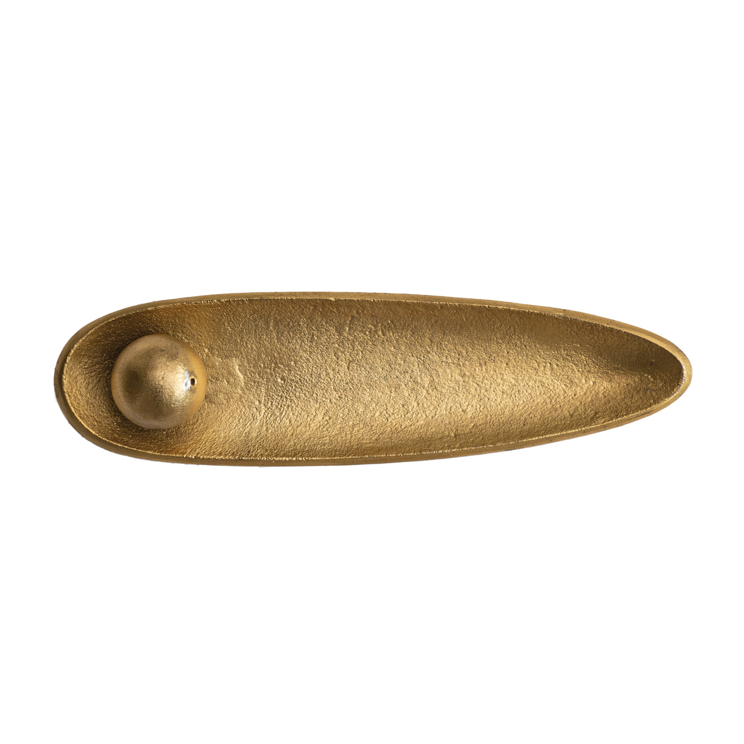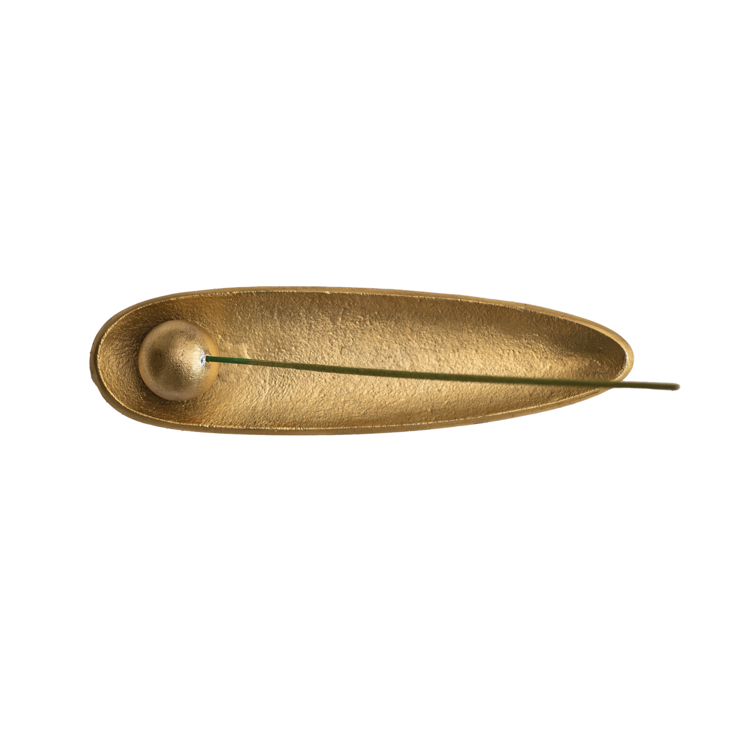 Catalog Name: 10"L x 2-3/4"W x 1-3/4"H Cast Aluminum Incense Holder, Gold Finish