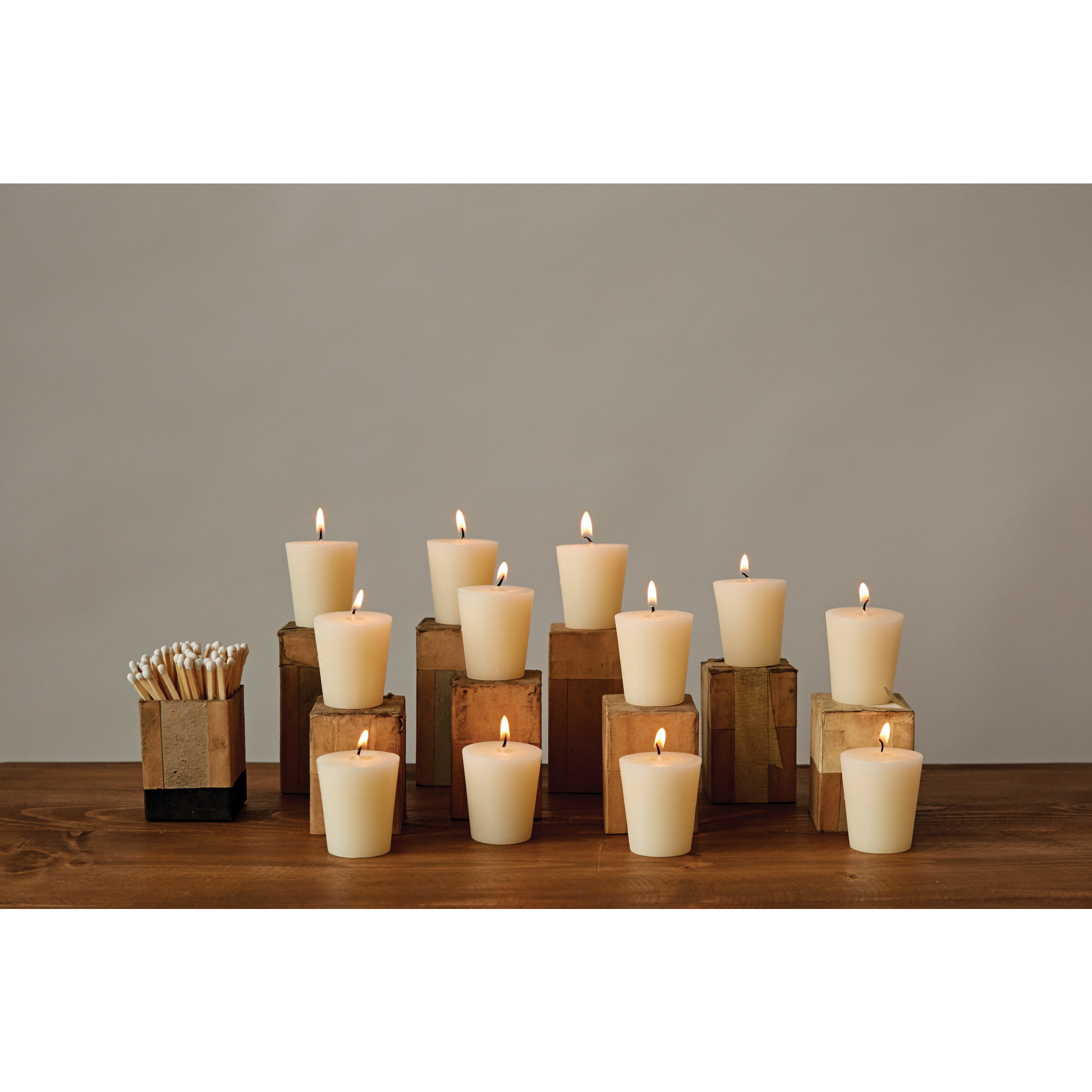 Catalog Name: 2"H Unscented Votive Candles in Box, Set of 12 (Est. Burn Time 15 Hours)