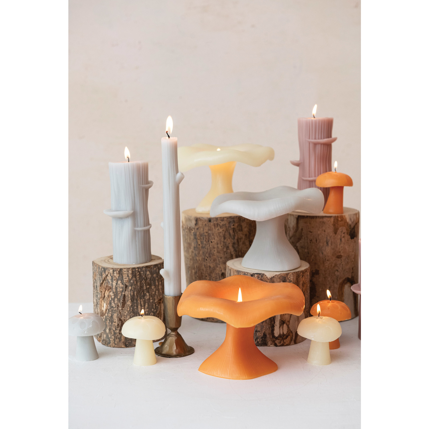 Unscented Mushroom Shaped Candles, Cream Color, Set of 4