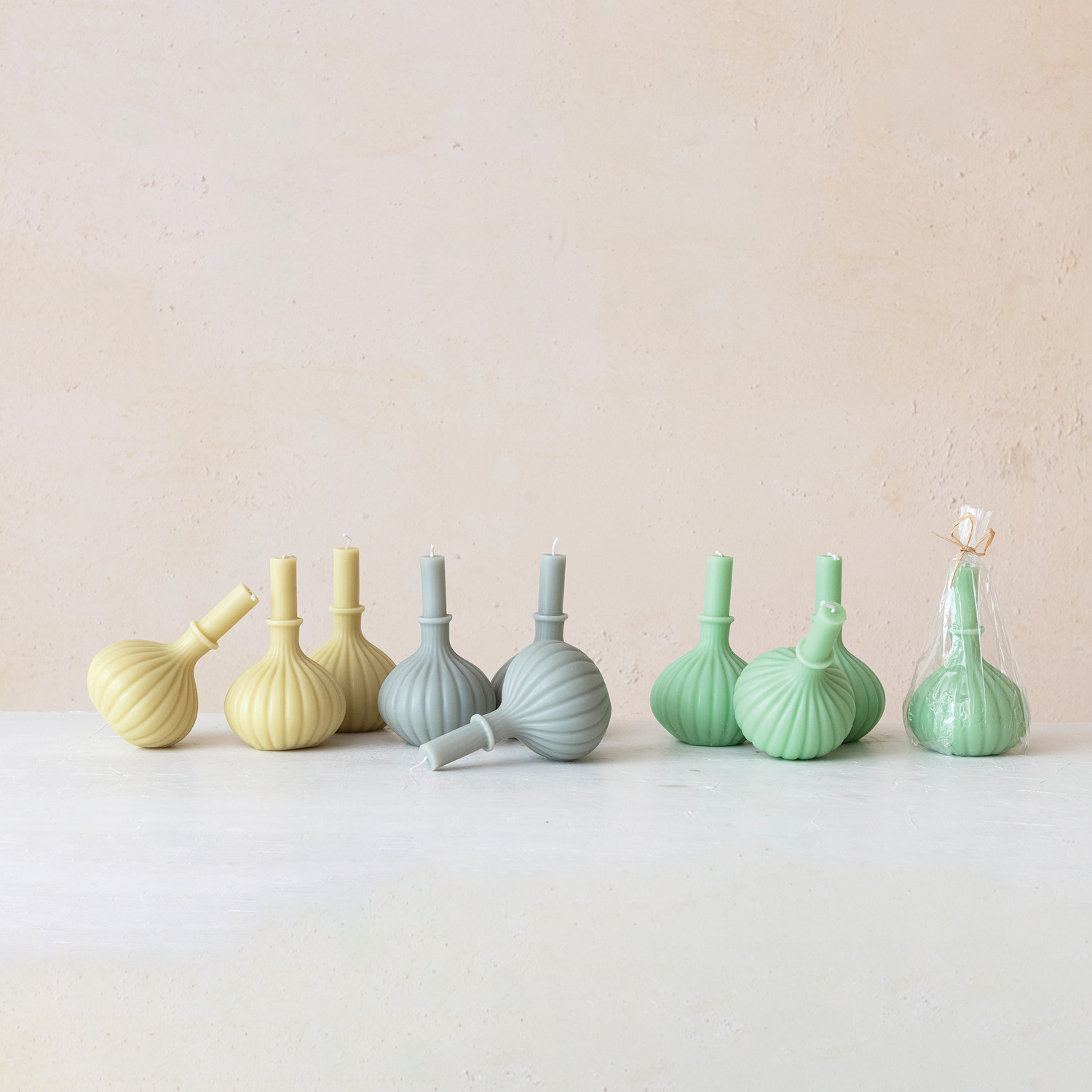 Unscented Taper in Pleated Vase Shaped Candle, Mint Color