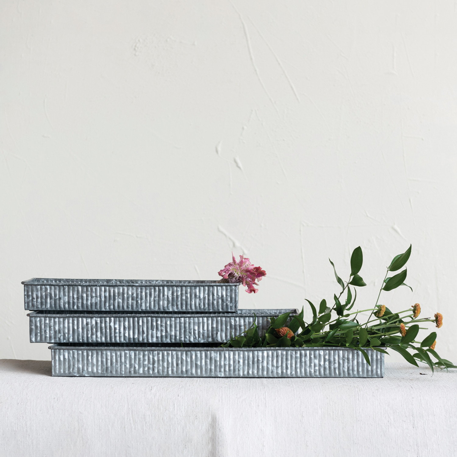 Decorative Galvanized Metal Trays, Set of 3