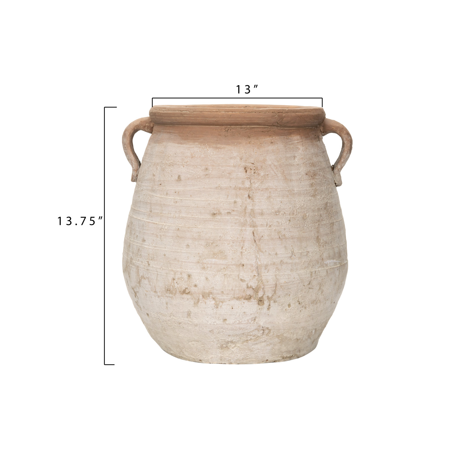 Catalog Name: 13-1/2"L x 13"W x 13-3/4"H Terra-cotta Urn, Whitewashed