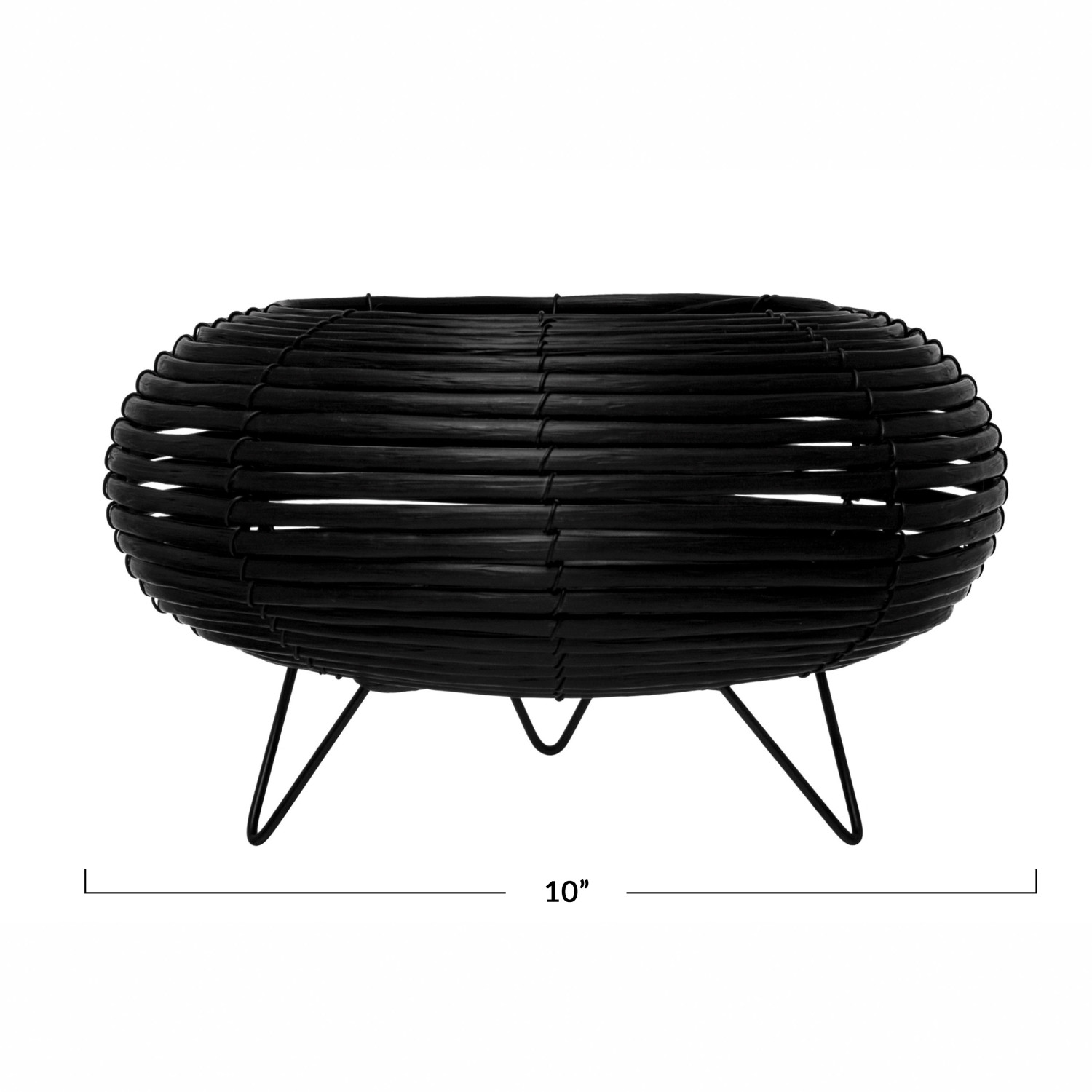 Catalog Name: 10" Round x 6-1/4"H Plastic Planter w/ Metal Feet, Black (Holds 5" Pot)