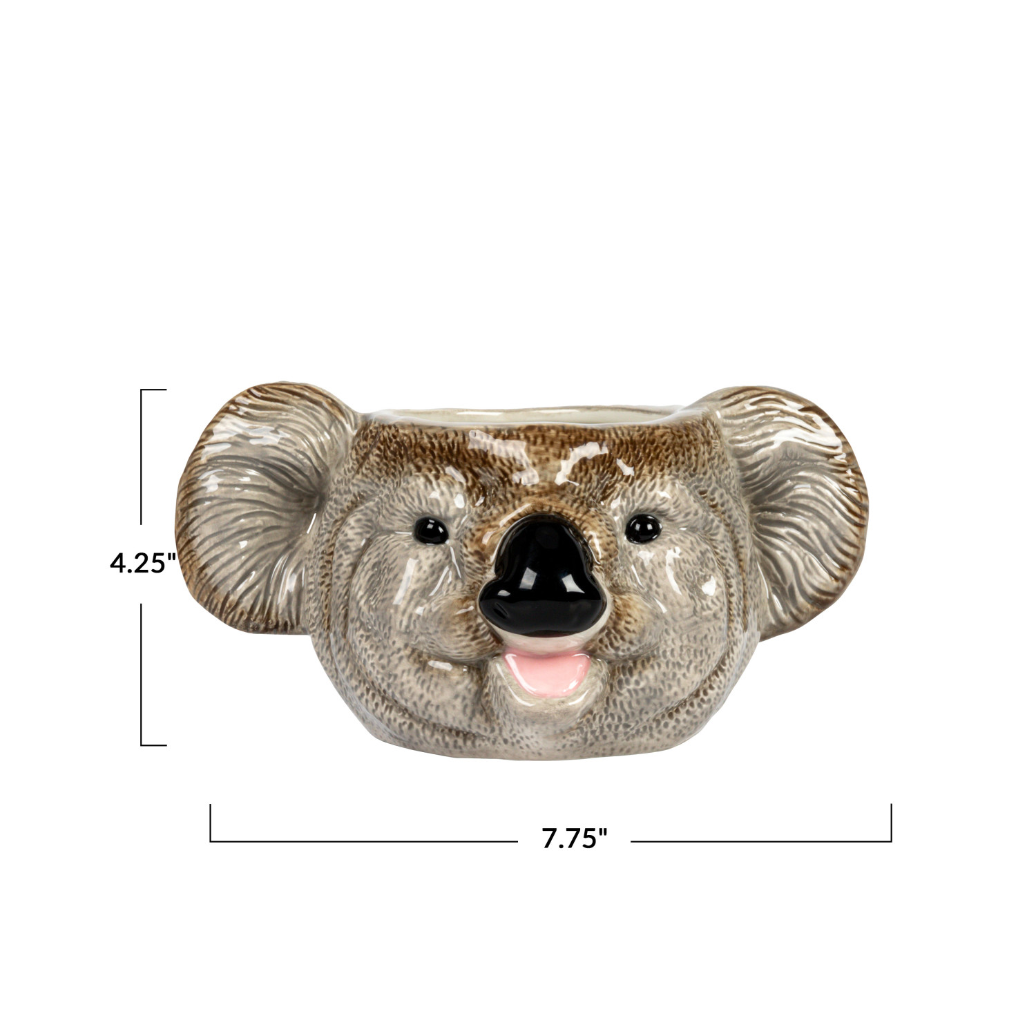 Catalog Name: 7-3/4" Round x 5-3/4"W x 4-1/4"H Ceramic Koala Head Planter, Grey & Black (Holds 3" Pot)