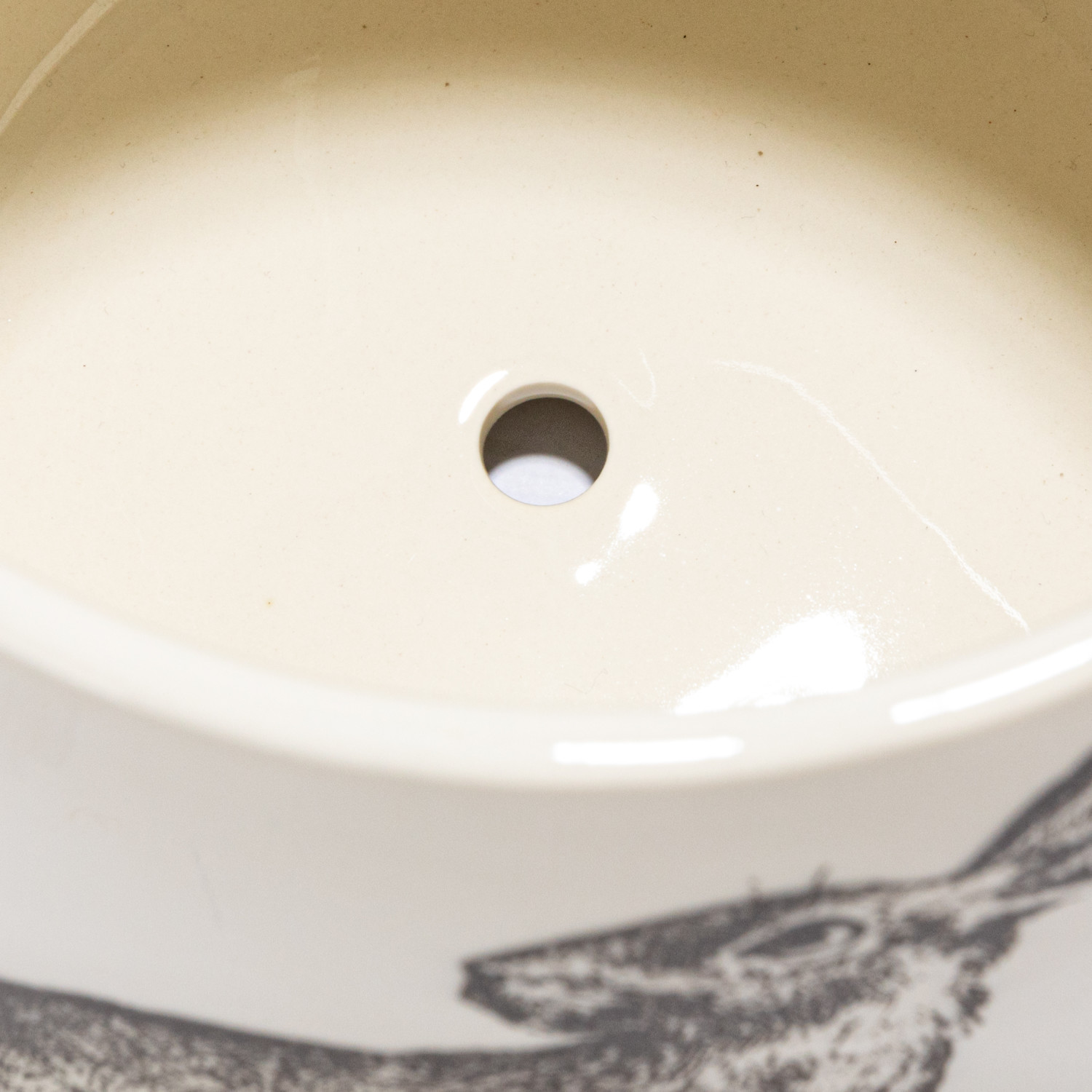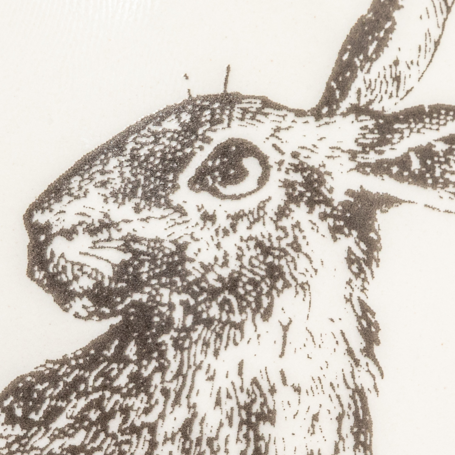 Catalog Name: 6-1/2" Round x 6"H Stoneware Planter w/ Rabbits & Scalloped Saucer, White & Charcoal Color, Set of 2 (Holds 5" Pot)