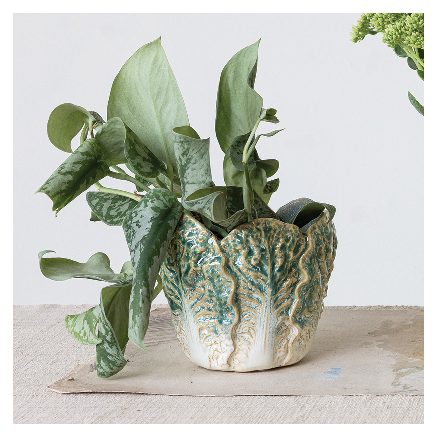 Stoneware Cabbage Shaped Planter (Holds 4" Pot) (Each One Will Vary)
