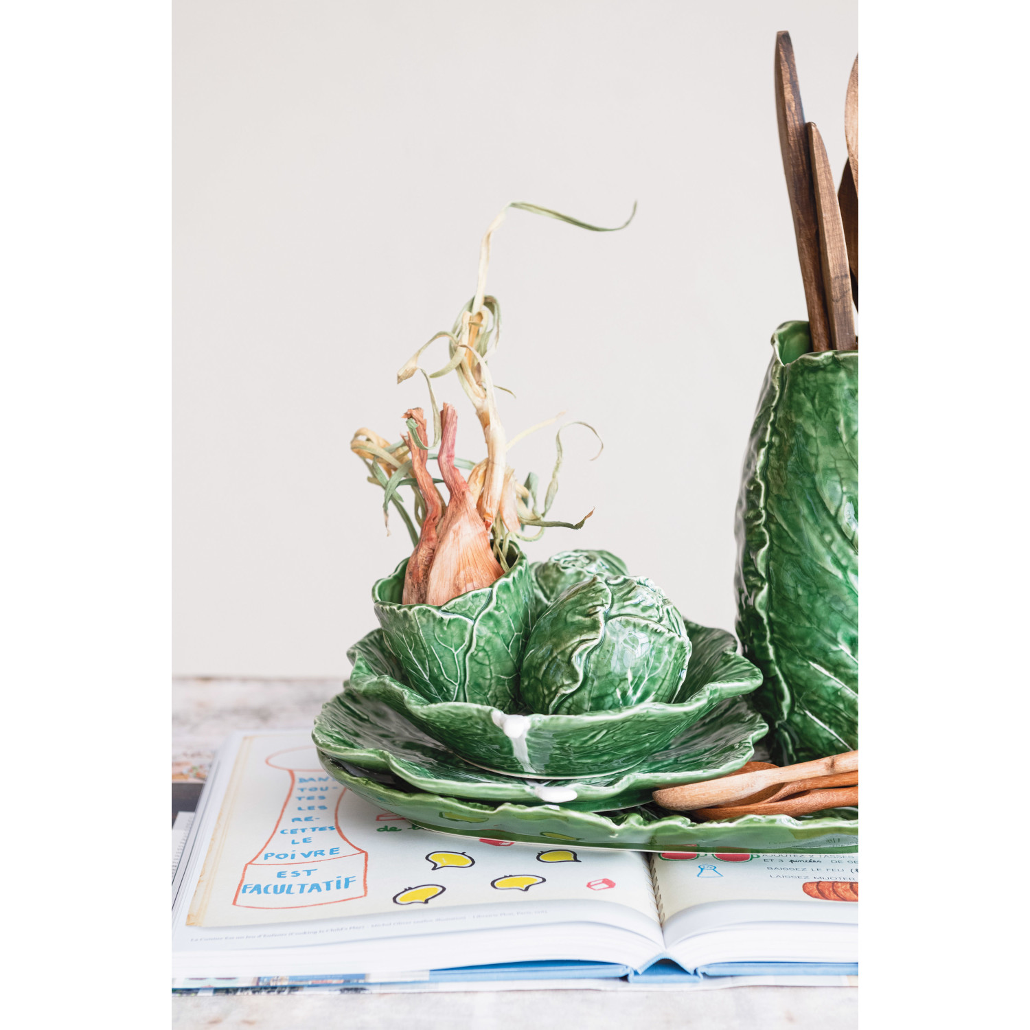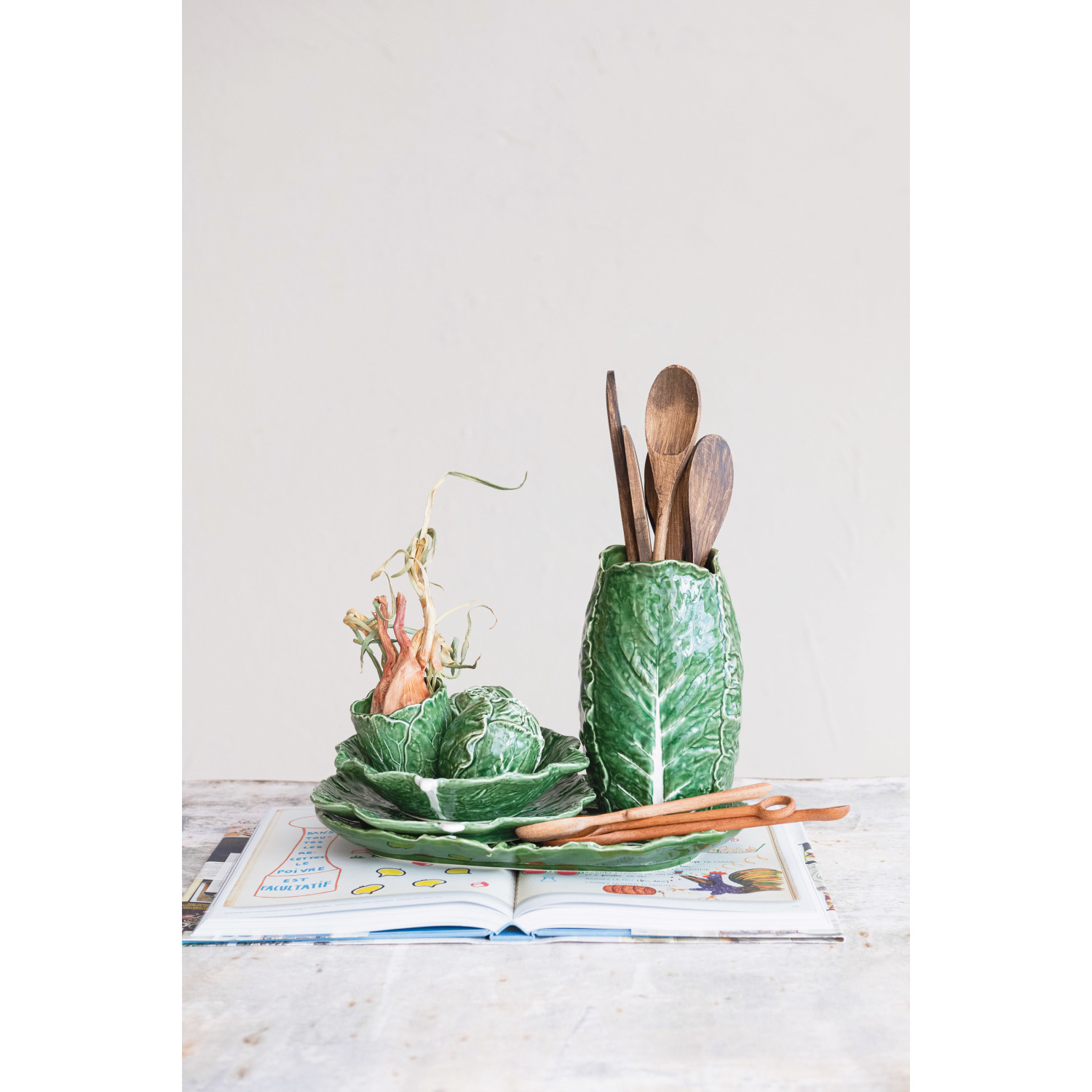 Hand-Painted Stoneware Cabbage Shaped Planter