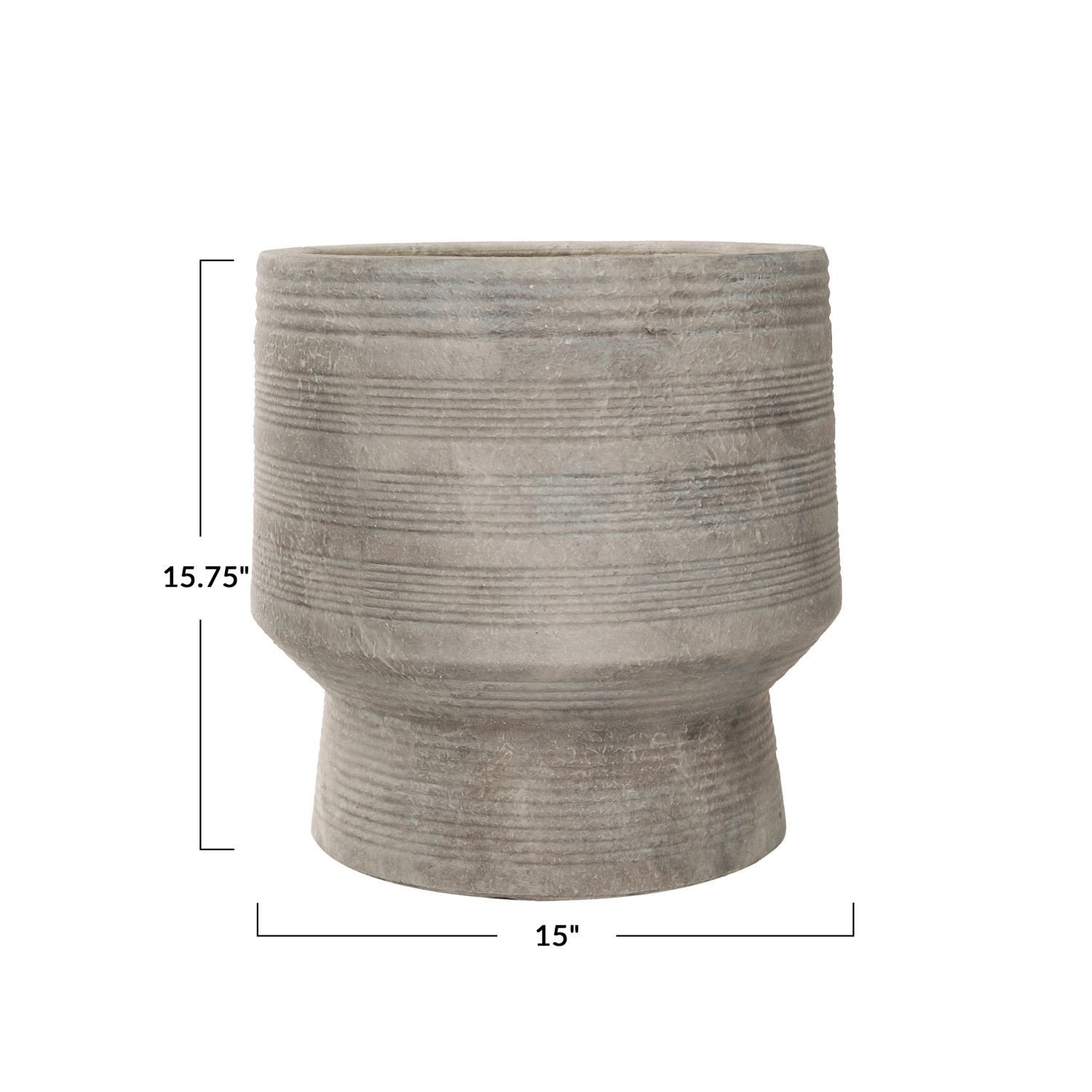Catalog Name: 15" Round x 15-3/4"H Stoneware Footed Planter w/ Debossed Lines, Matte Cream Color, Truck Ship