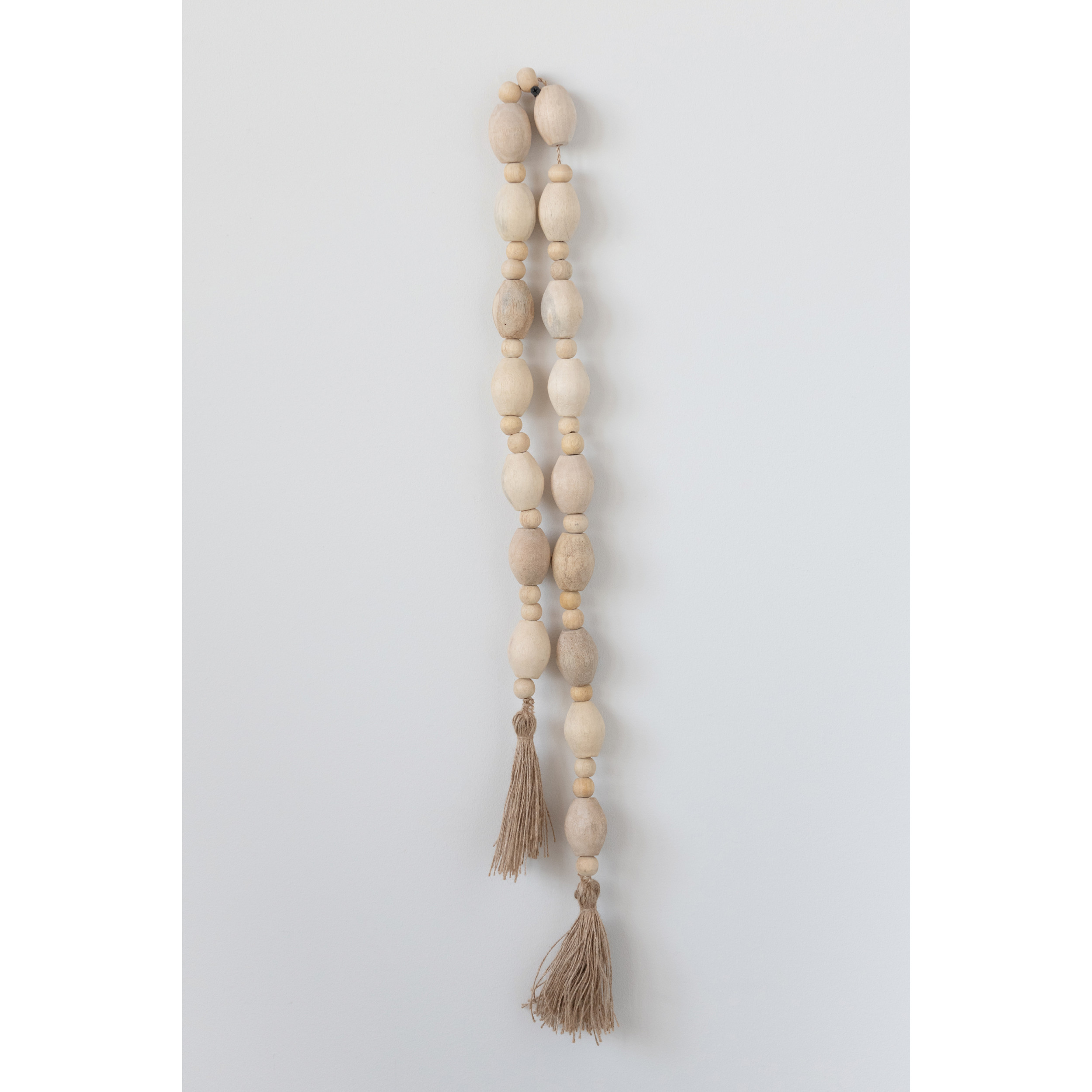 Mango Wood Bead Garland with Jute Tassels