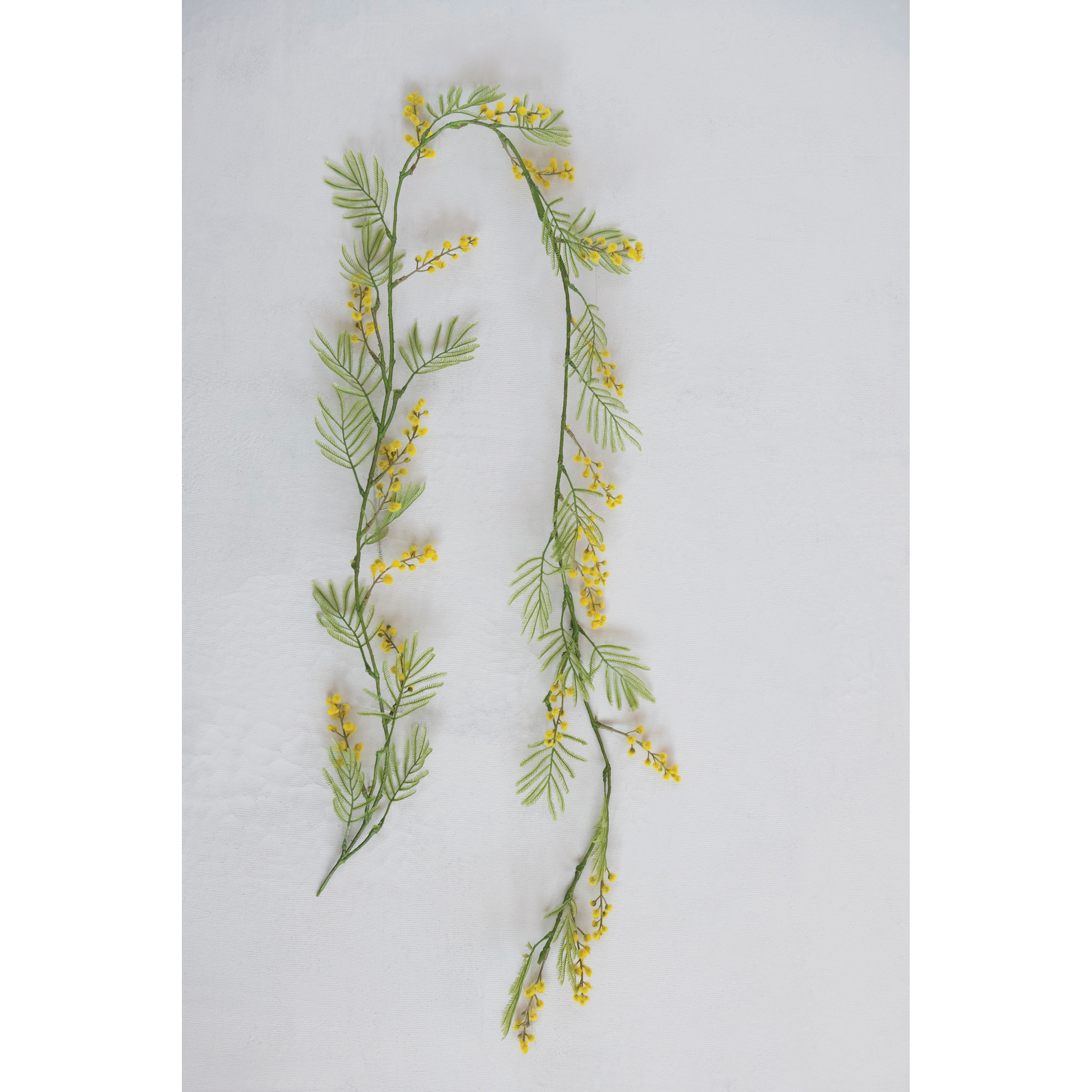 This whimsical decorative garland showcases striking faux Craspedia Billy Buttons on a green willowy vine. Decorative faux garland with yellow flowers. Add a touch of natural beauty to any gathering space with this beautiful faux flora. Display indoors to instantly brighten any living space with low maintenance natural flair.