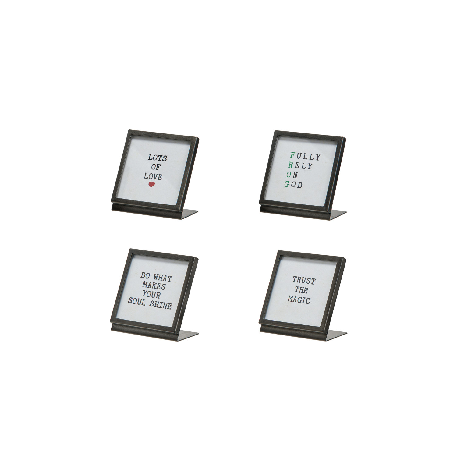 Catalog Name: 3" Square Metal & Glass Frame w/ Easel & Saying, Gunmetal Finish, 4 Styles (Holds 3" Square Photo)