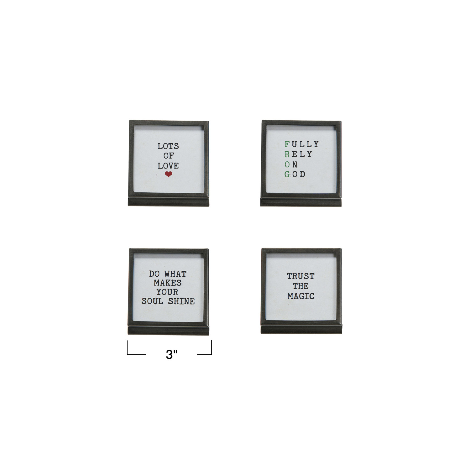 Metal & Glass Frame w/ Easel & Saying, 4 Styles (Holds 3" Square Photo)