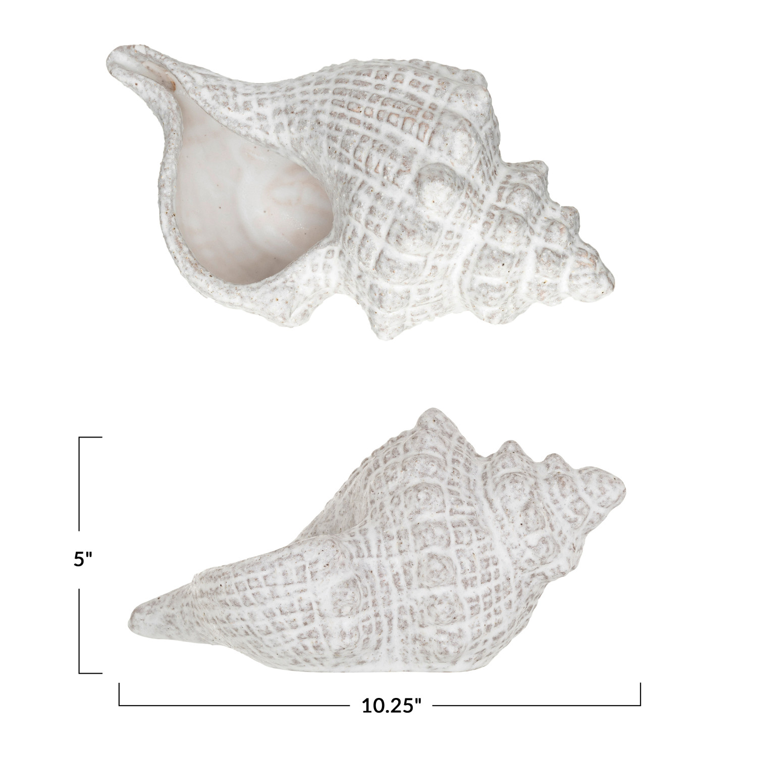 Bring the charm of the ocean to any home with this stoneware conch shell accent decor. This exquisite piece features a realistic conch shell shape with intricate details and textures. The glossy white finish adds a touch of elegance and sophistication to this coastal-inspired decor. Create a nautical theme or just add some seaside flair, this stoneware conch shell will enhance any space with its beauty and style. It can be displayed on a shelf, table, or mantel, or used as a centerpiece or a vase for some favorite flowers. This accent decor is made of high-quality stoneware that is durable and easy to clean. This stoneware conch shell accent decor is a must-have for anyone who loves the sea and its wonders.